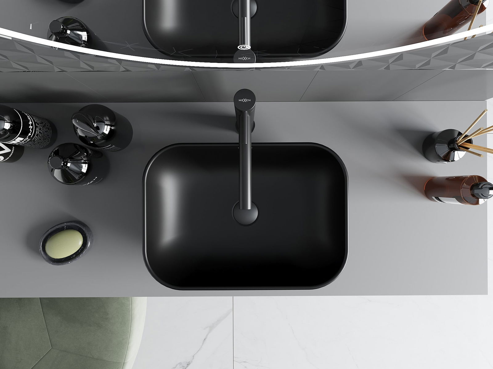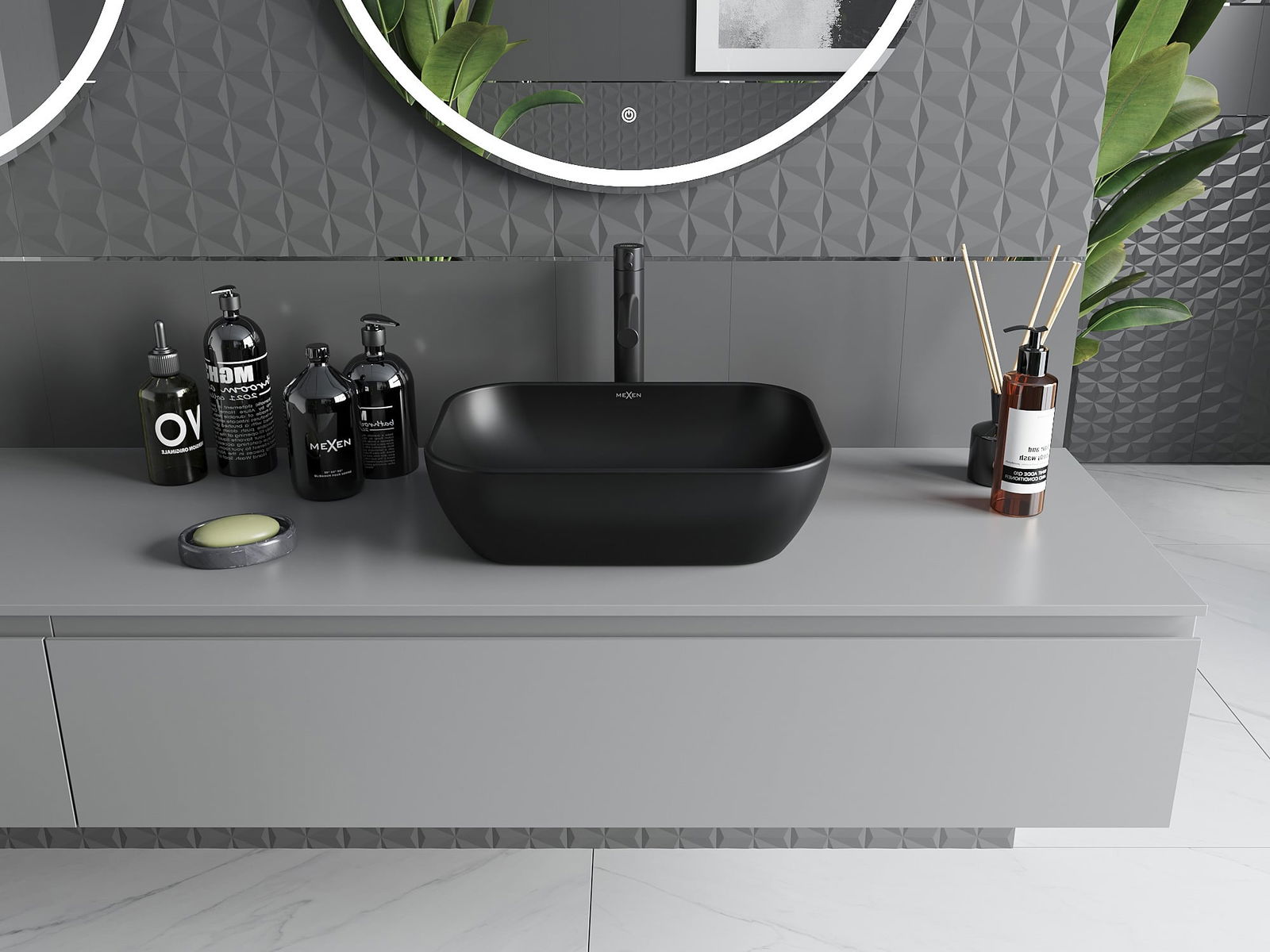 A superfície mate da cerâmica destaca perfeitamente o caráter da cor do produto, conferindo-lhe um acabamento único e marcante. A estrutura subtil da cerâmica mate traz elegância à casa de banho, criando um espaço estético.