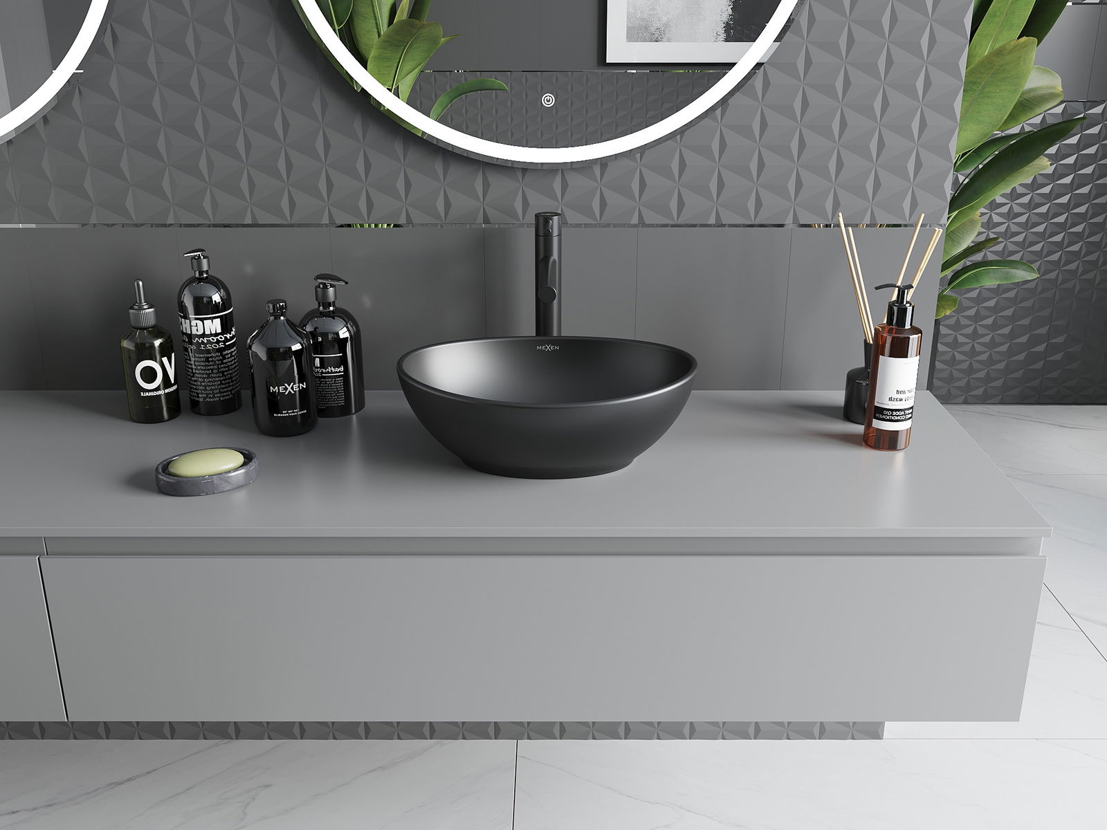 A superfície mate da cerâmica destaca perfeitamente o caráter da cor do produto, conferindo-lhe um acabamento único e marcante. A estrutura subtil da cerâmica mate traz elegância à casa de banho, criando um espaço estético.