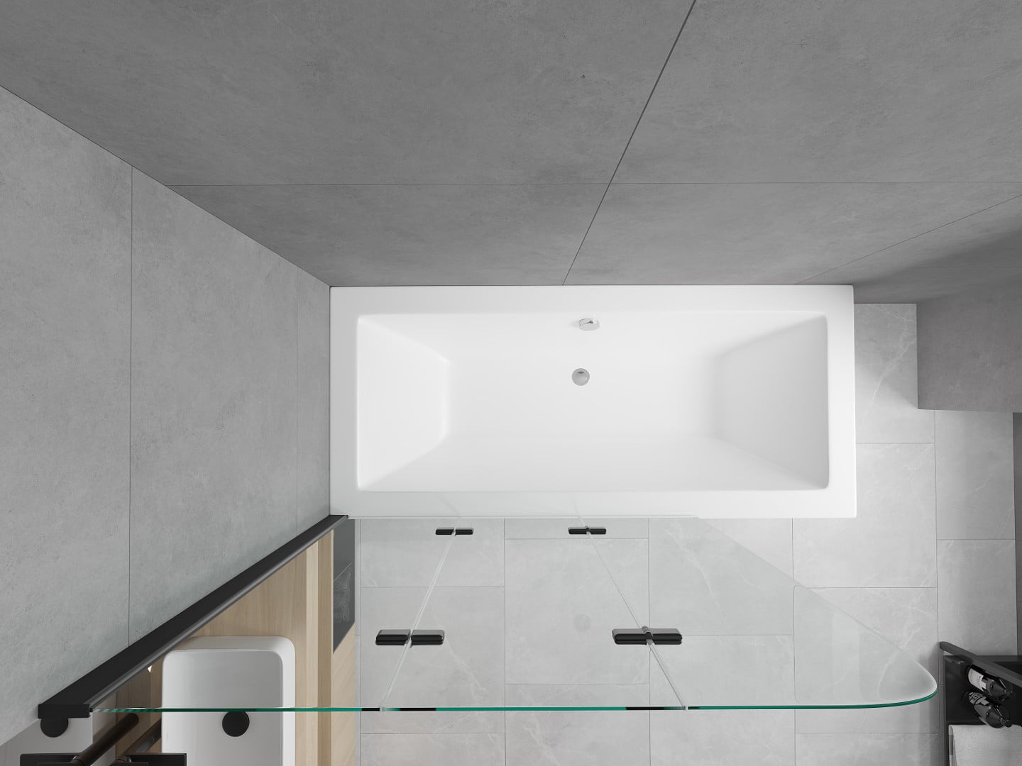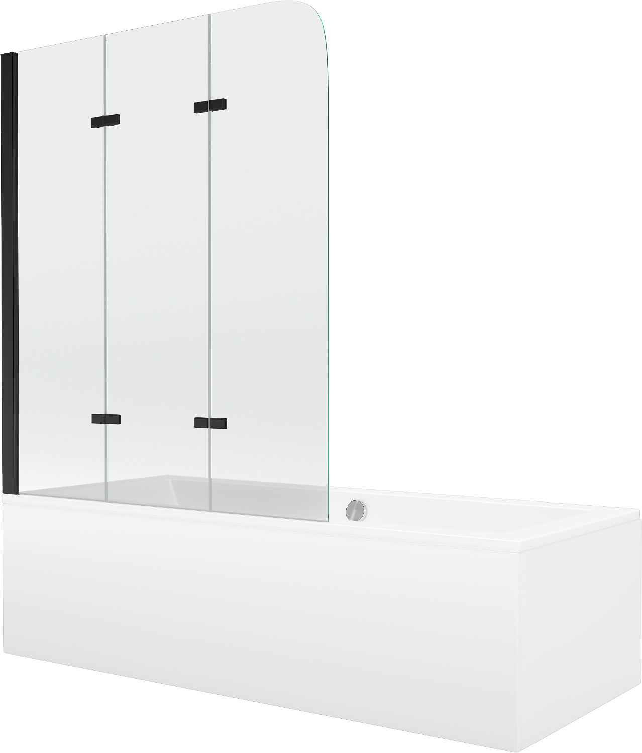 Mexen Cube banheira retangular 170 x 80 cm com painel e ecrã de banho de 3 folhas 120 cm, transparente, preto