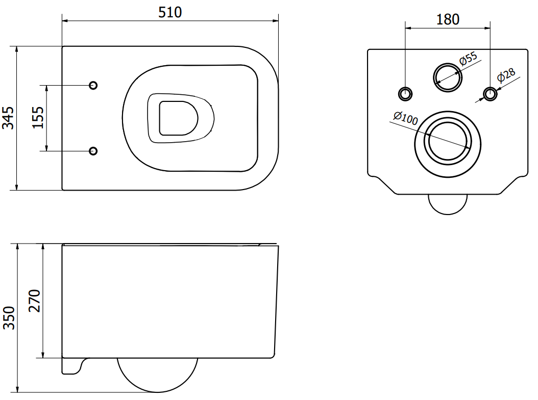Para sanita suspensa com espaçamento de furos de 18 cm ou 23 cm
