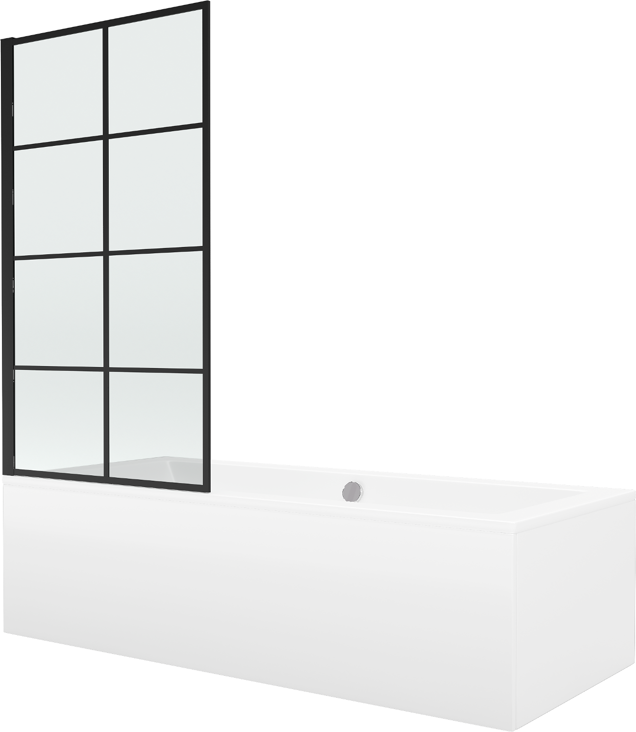 Mexen Cube banheira retangular 170 x 80 cm com painel e resguardo de banho de 1 folha 80 cm, padrão preto