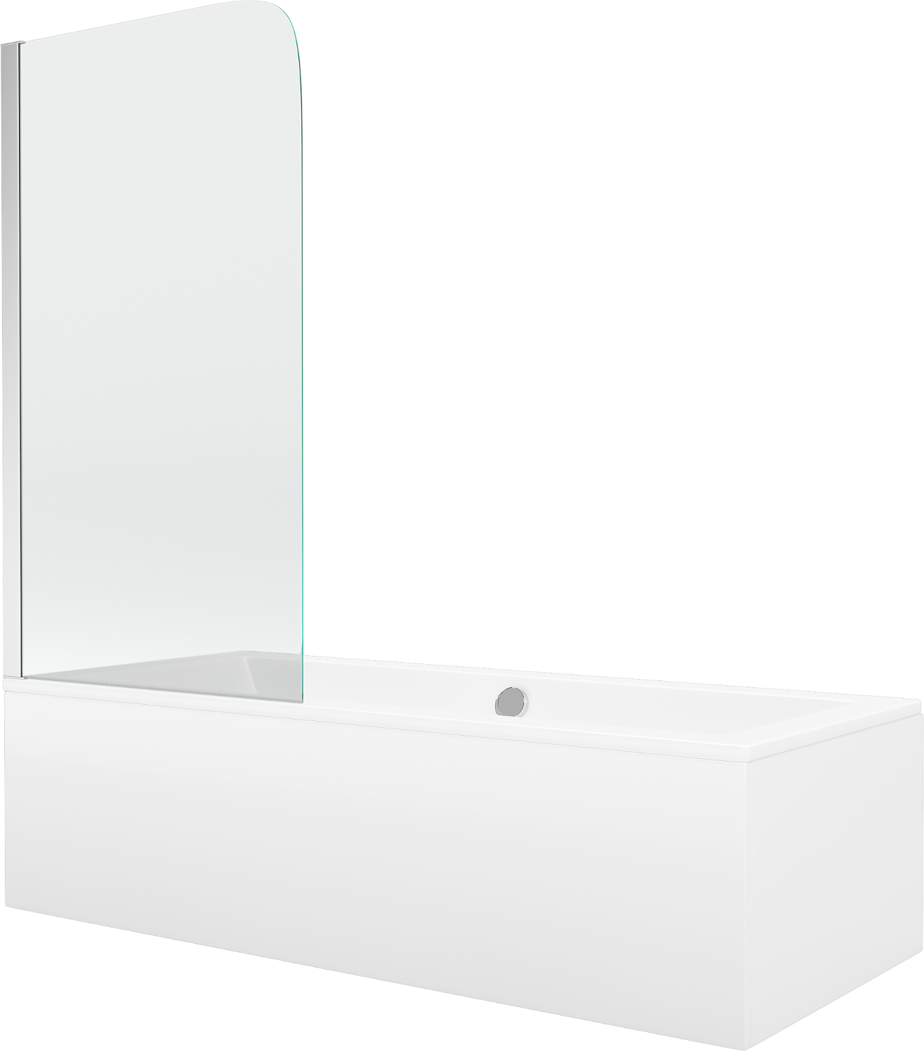 Mexen Cube banheira retangular 180 x 80 cm com revestimento e painel de vidro de 1 folha 75 cm, transparente, cromado