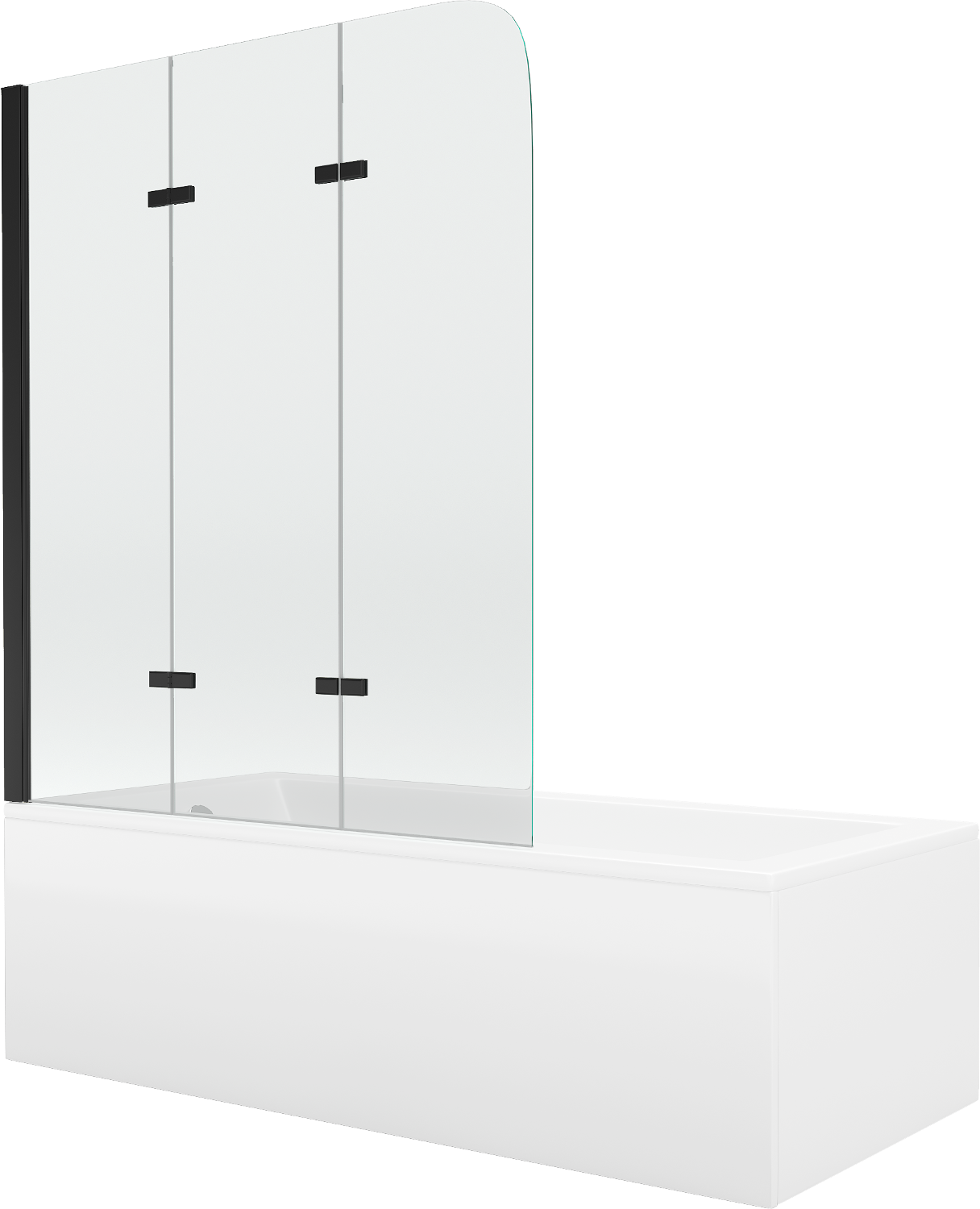 Resguardo fabricado com três folhas, podendo ser dobrado. Esta solução permite poupar mais espaço na casa de banho e possibilita o uso livre do restante espaço quando a zona de banho não está em uso.
