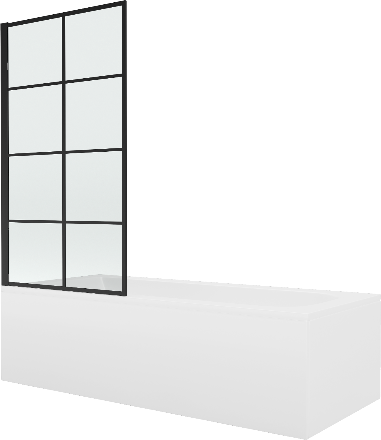 Mexen Vega banheira retangular 160 x 70 cm com revestimento e para-vento de 1 folha 70 cm, padrão preto - 550116070X9307017077