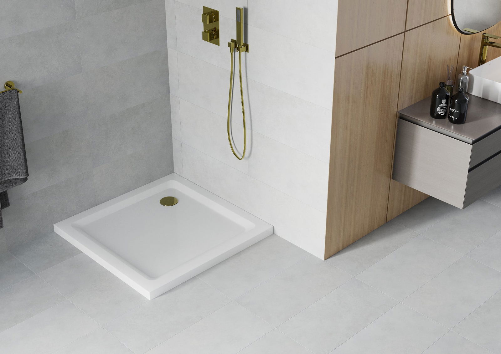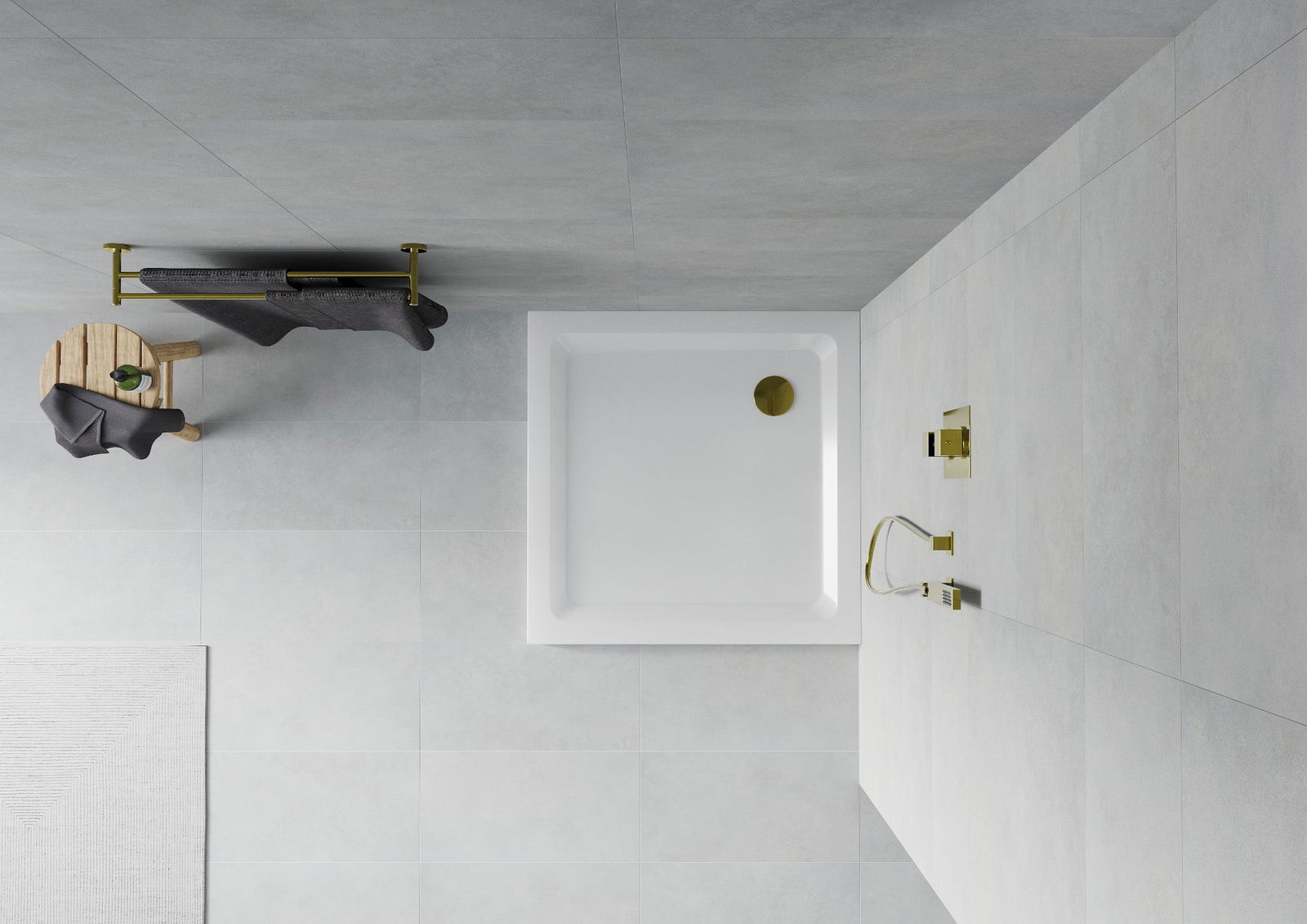 Mexen Flat base de duche quadrada slim 80 x 80 cm, branca, sifão dourado - 40108080G