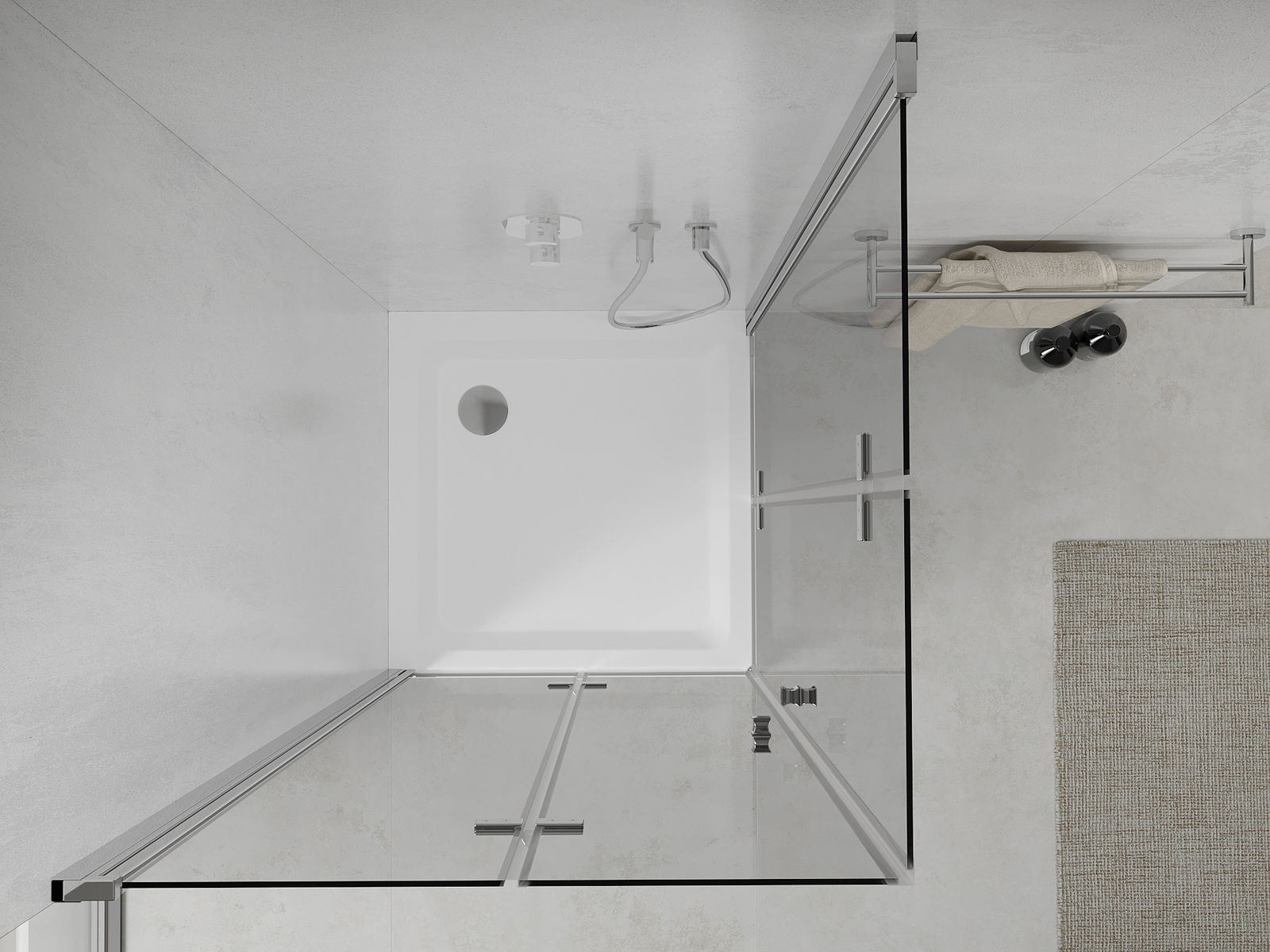 A pega prática e confortável foi feita de metal durável e resistente. A forma moderna combinada com o acabamento ajustado à cor dos perfis confere a todo o conjunto uma aparência moderna e estilosa, realçando a estética de qualquer casa de banho.