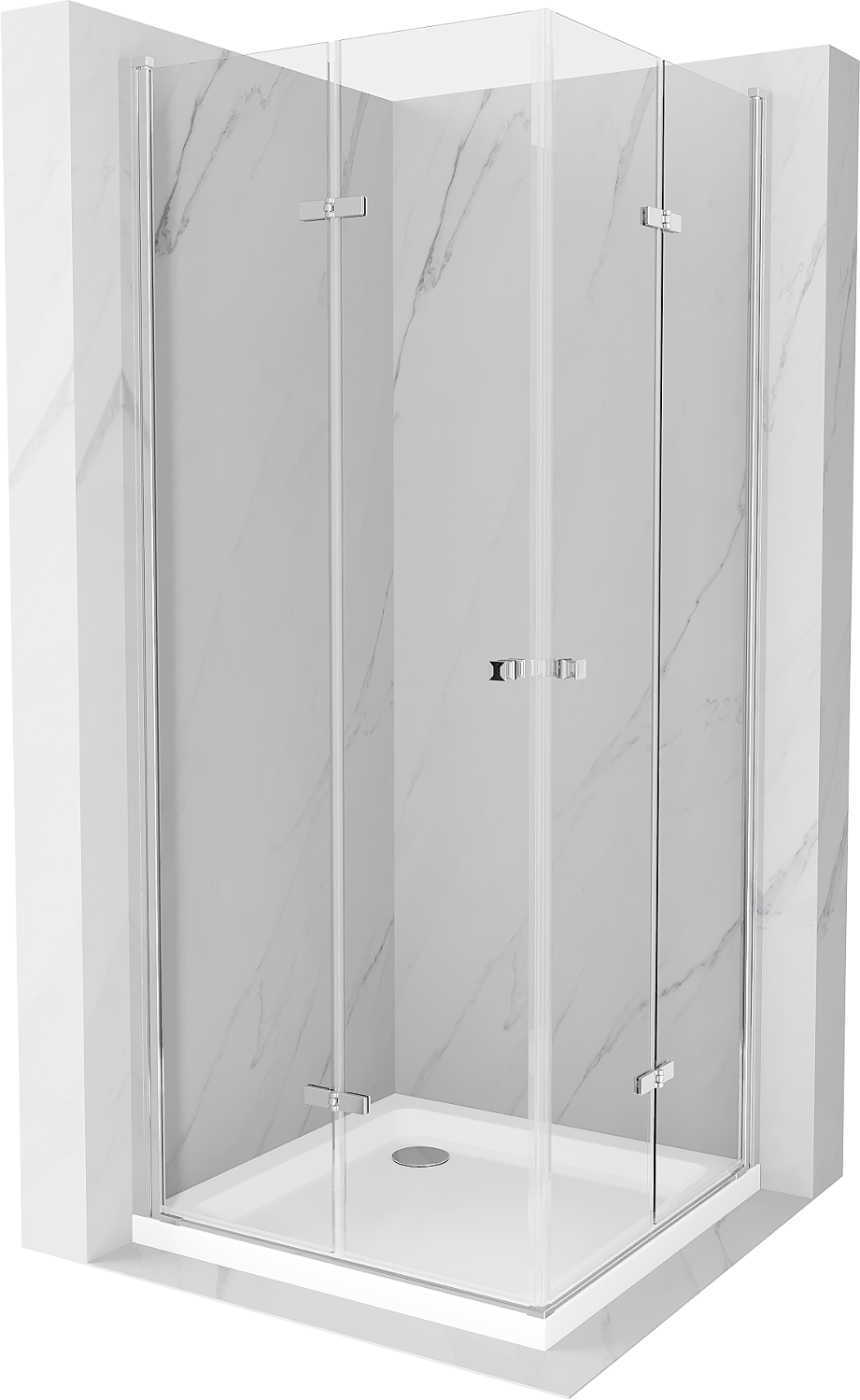 Mexen Lima Duo cabine de duche dobrável 80 x 80 cm, transparente, cromado + base de duche Flat - 856-080-080-01-02-4010
