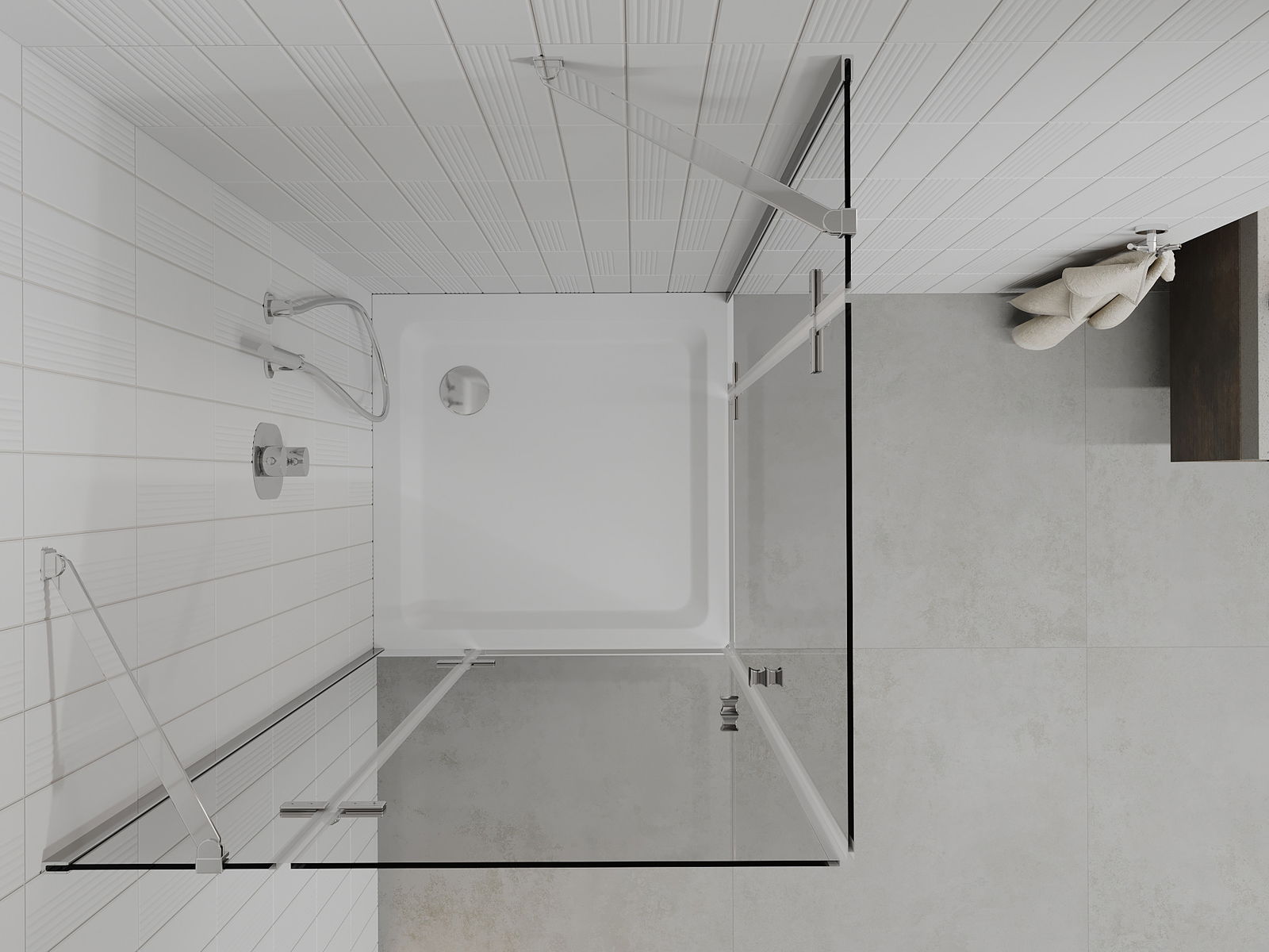 A pega prática e confortável foi feita de metal durável e resistente. A forma moderna combinada com o acabamento ajustado à cor dos perfis confere a todo o conjunto uma aparência moderna e estilosa, realçando a estética de qualquer casa de banho.