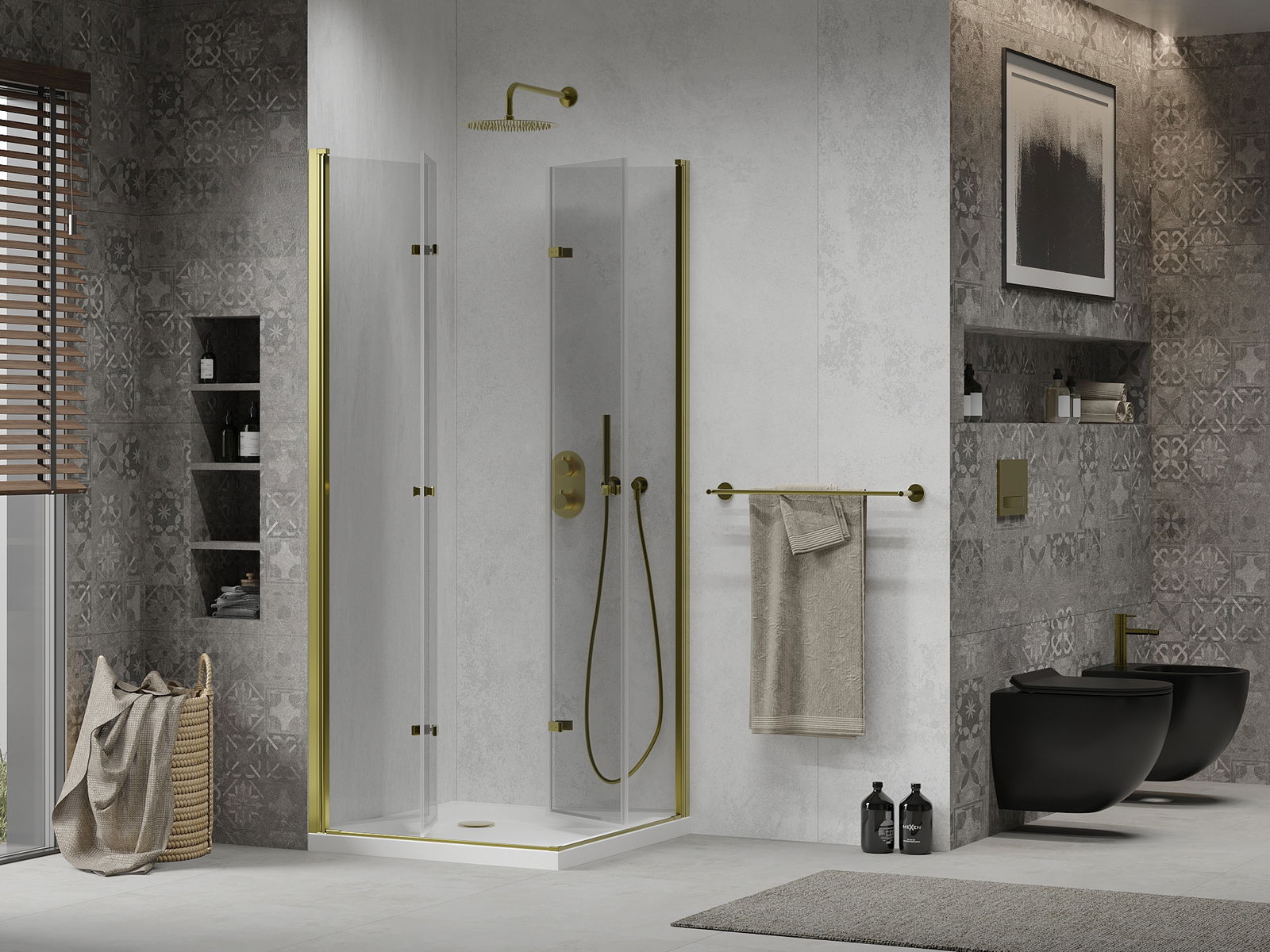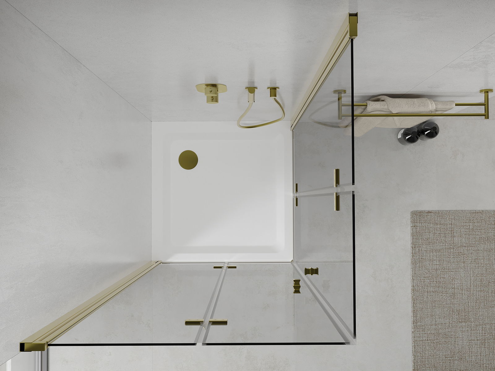 A pega prática e confortável foi feita de metal durável e resistente. A forma moderna combinada com o acabamento ajustado à cor dos perfis confere a todo o conjunto uma aparência moderna e estilosa, realçando a estética de qualquer casa de banho.
