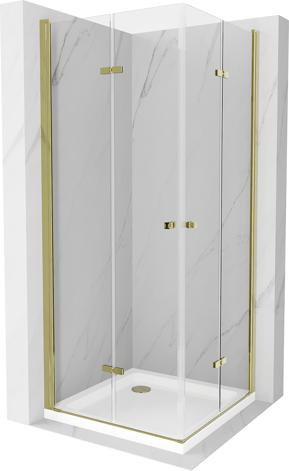 Mexen Lima Duo cabine de duche dobrável 100 x 100 cm, transparente, dourada + base de duche Flat - 856-100-100-50-02-4010G