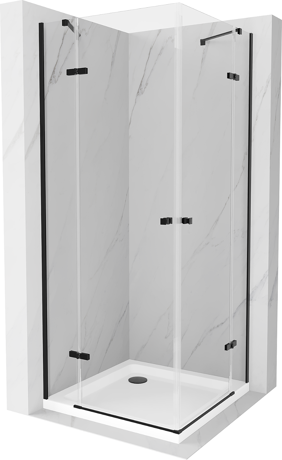 Mexen Roma Duo cabine de duche de abrir 70 x 70 cm, transparente, preta + base de duche Flat - 854-070-070-70-02-4010B