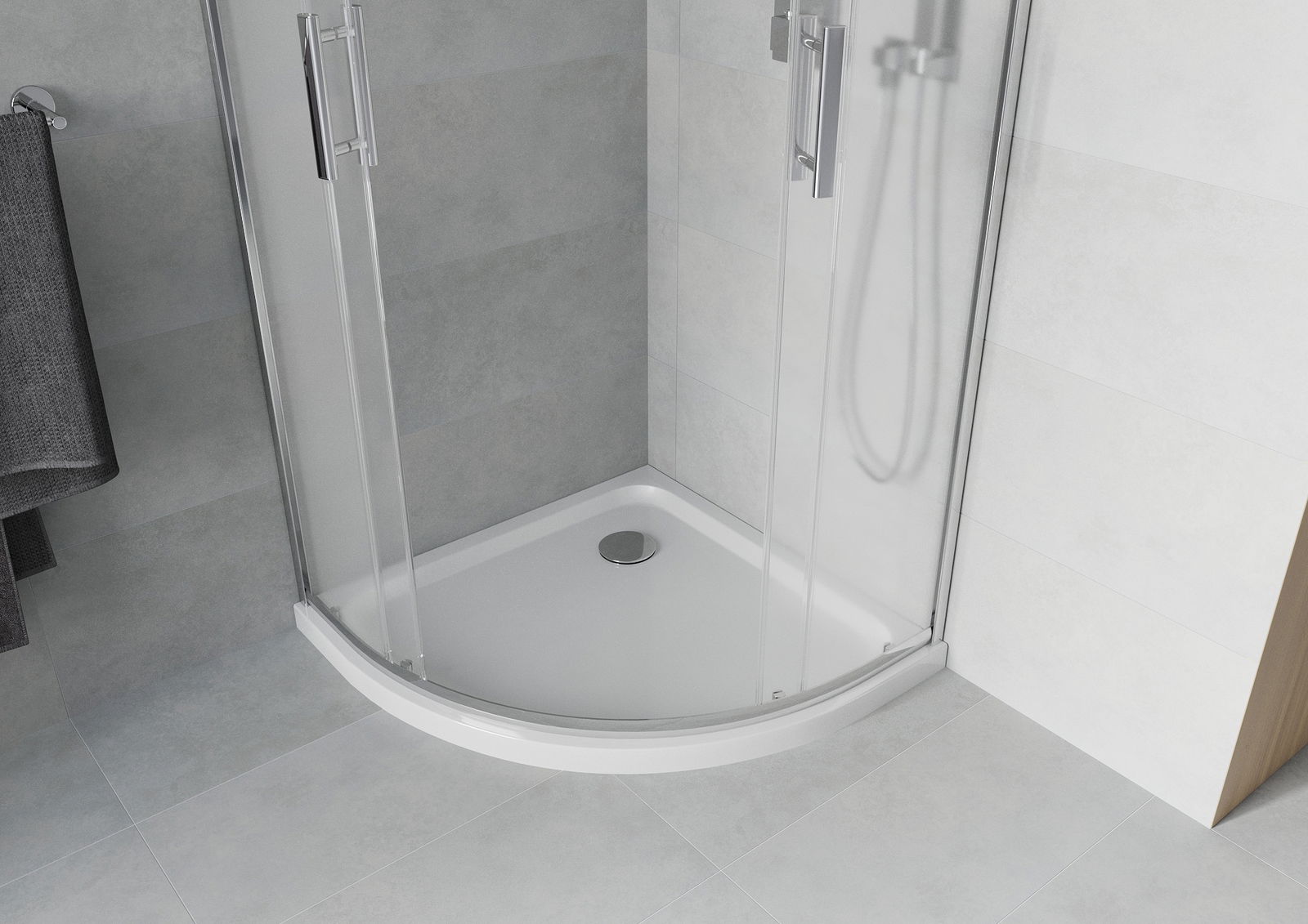 Mexen Rio cabine de duche semicircular 90 x 90 cm, fosco, cromado + base de duche Flat, branco - 863-090-090-01-30-4110