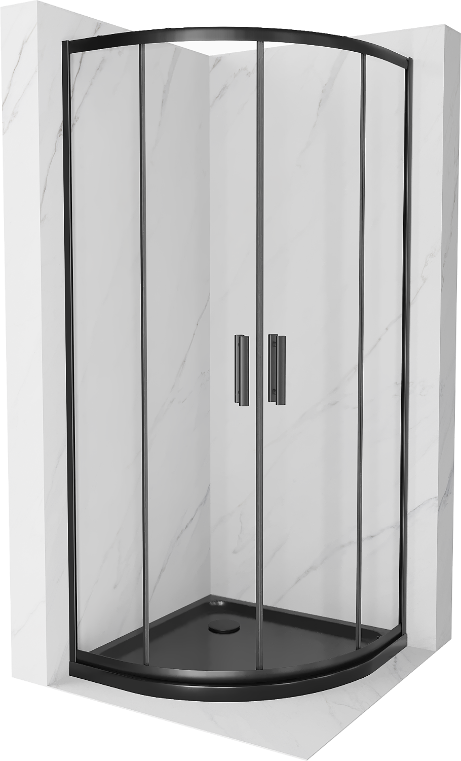 Mexen Rio cabine de duche semicircular 80 x 80 cm, transparente, preta + base de duche Flat, preta - 863-080-080-70-00-4170B