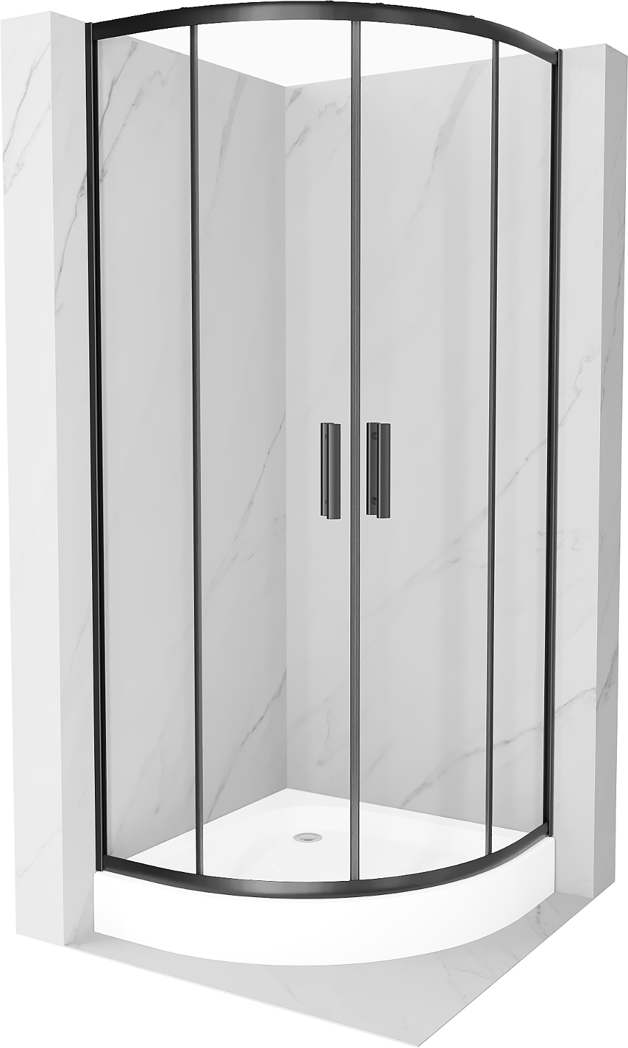 Mexen Rio cabine de duche semicircular 70 x 70 cm, transparente, preta + base de duche, branca - 863-070-070-70-00-4710