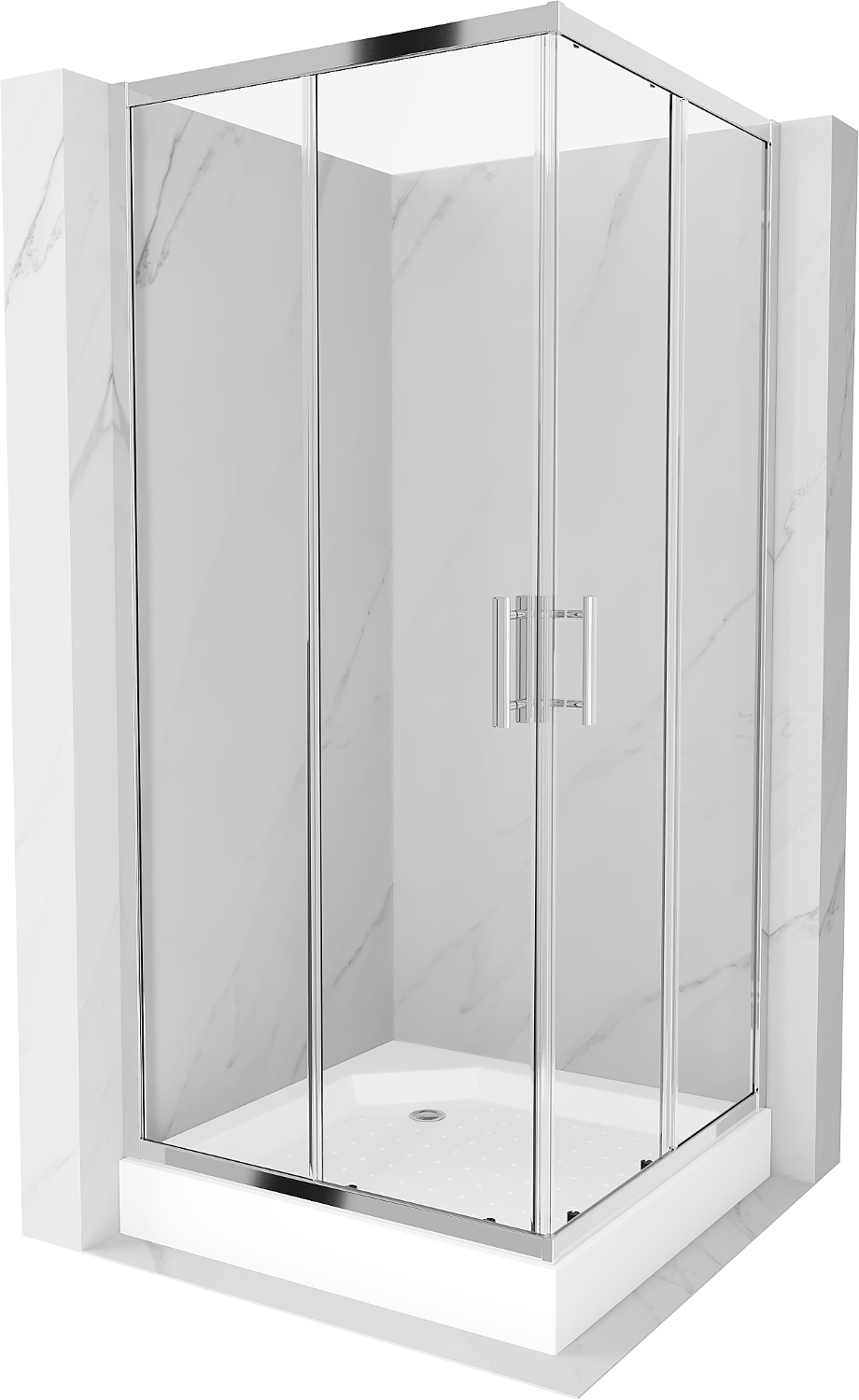 Mexen Rio cabina de duche quadrada 90 x 90 cm, transparente, cromado + base de duche, branco - 860-090-090-01-00-4510