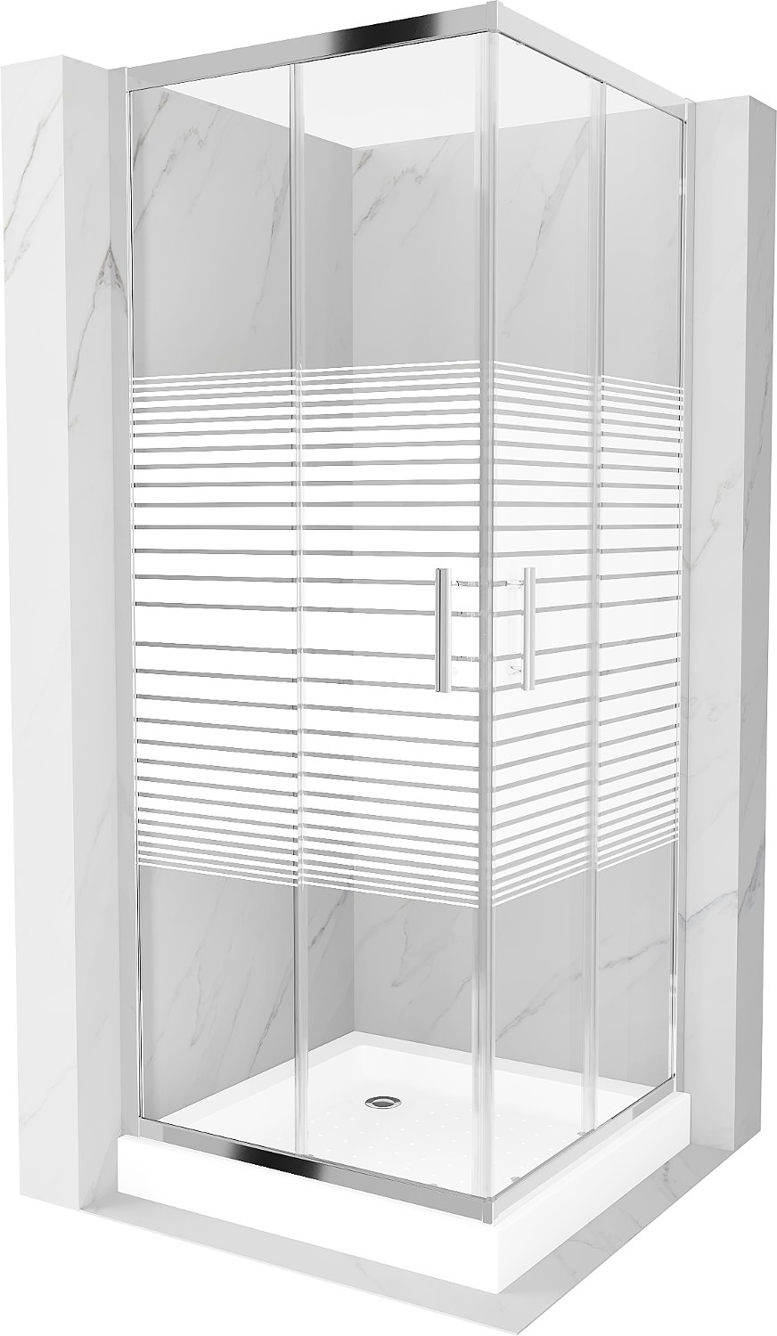 Mexen Rio cabine de duche quadrada 80 x 80 cm, faixas brancas, cromado + base de duche, branco - 860-080-080-01-20-4510
