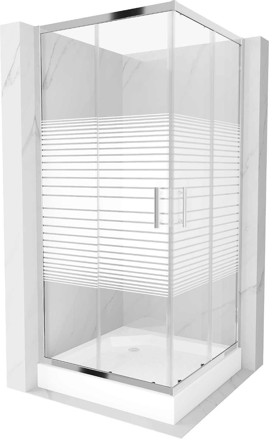 Mexen Rio cabine de duche quadrada 90 x 90 cm, faixas brancas, cromado + base de duche, branco - 860-090-090-01-20-4510