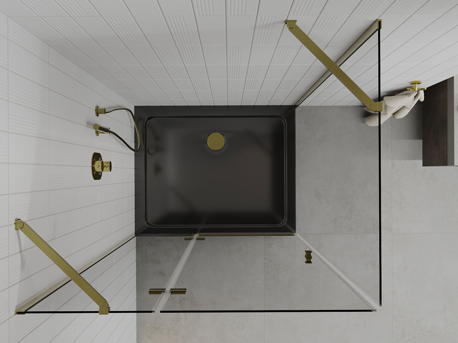 Mexen Roma cabine de duche com porta de abrir 80 x 100 cm, transparente, dourada + base de duche Flat, preta