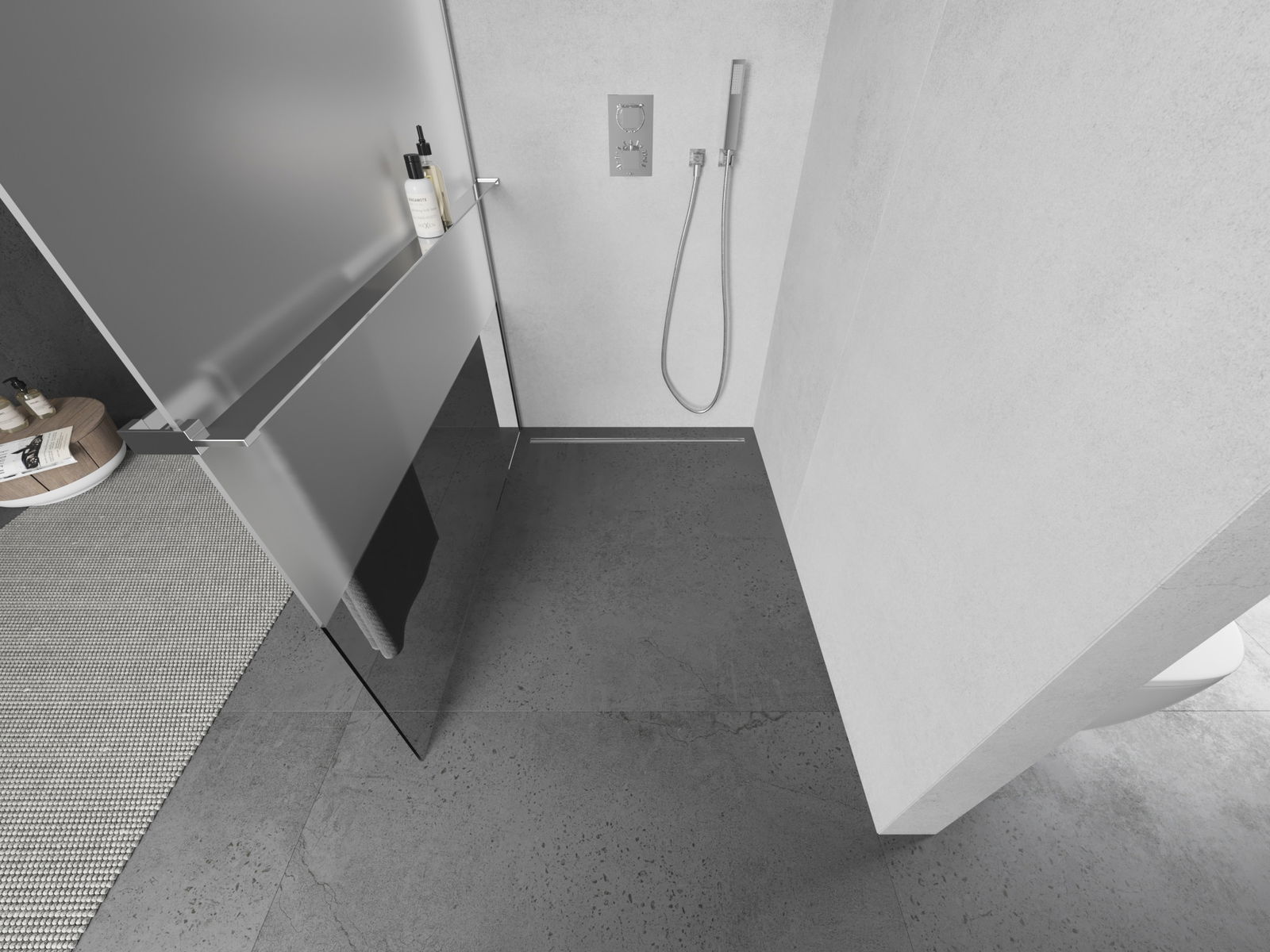 Mexen Kioto+ parede de duche com prateleira Walk-in 120 x 200 cm, transparente/frost, cromado - 800-120-121-01-35