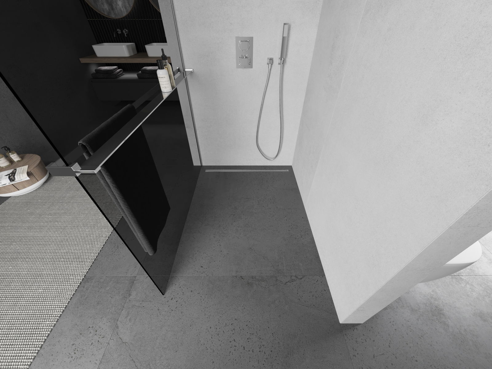 O produto, dependendo das necessidades, pode ser montado tanto no chuveiro como diretamente no chão. O método de montagem universal permite adaptar o produto a diferentes tipos de casas de banho e configurações de espaço.
