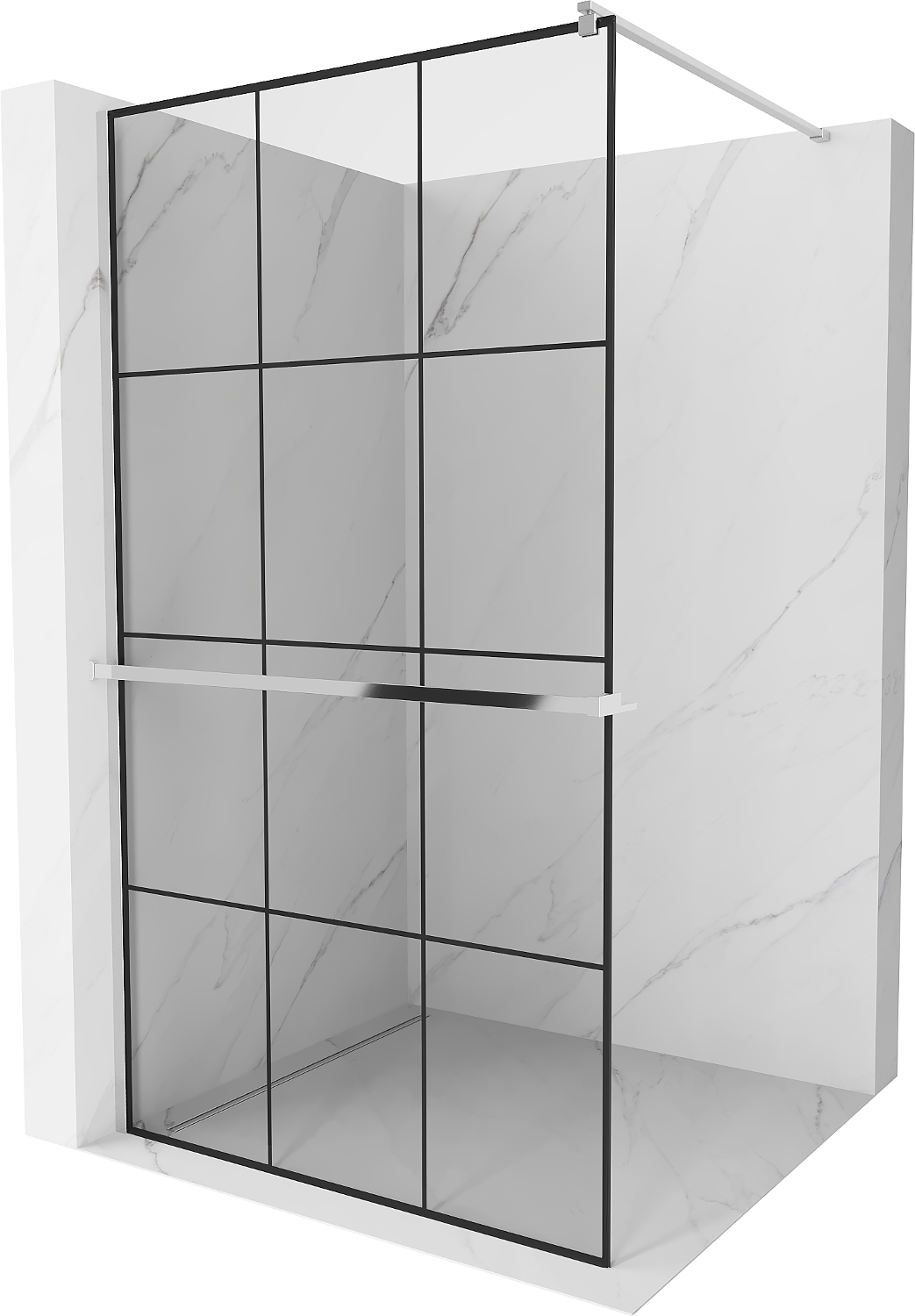 Mexen Kioto+ parede de duche com prateleira Walk-in 120 x 200 cm, grelha preta, cromada - 800-120-121-01-77