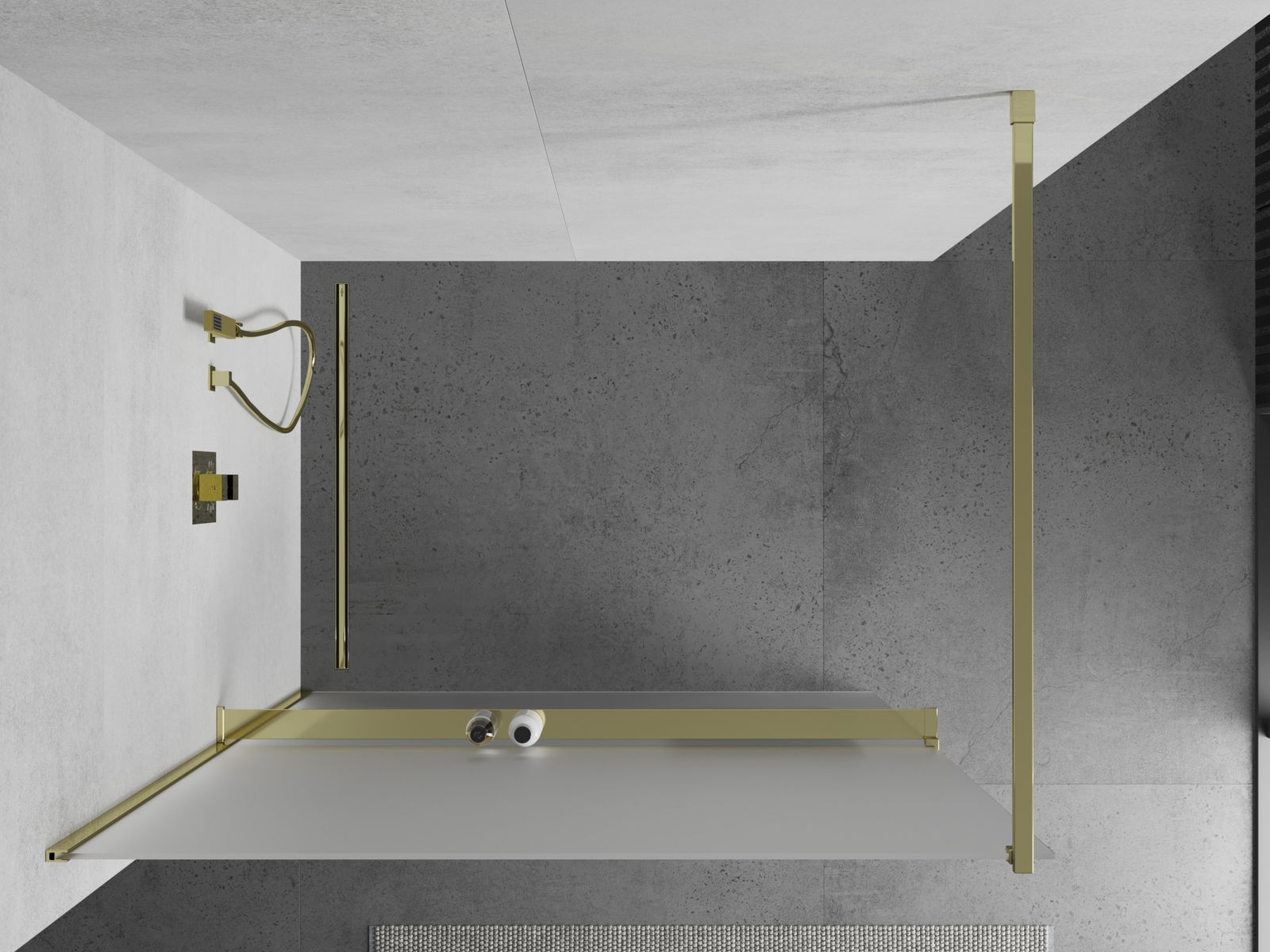 Mexen Kioto+ parede de duche com prateleira Walk-in 70 x 200 cm, fosca, dourada - 800-070-121-50-30