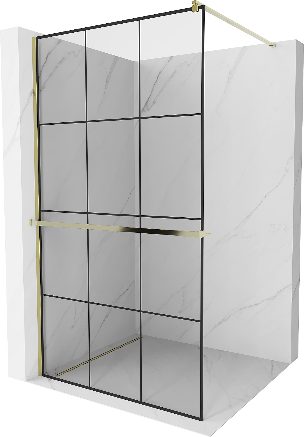 Mexen Kioto+ painel de duche com prateleira Walk-in 100 x 200 cm, grade preta, dourada - 800-100-121-50-77