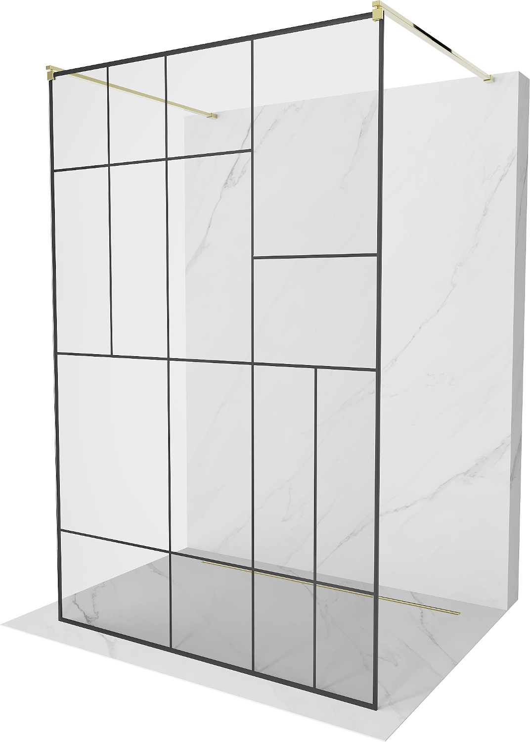 Mexen Kioto parede de chuveiro independente 100 x 200 cm, padrão preto 8 mm, dourado - 800-100-002-50-78
