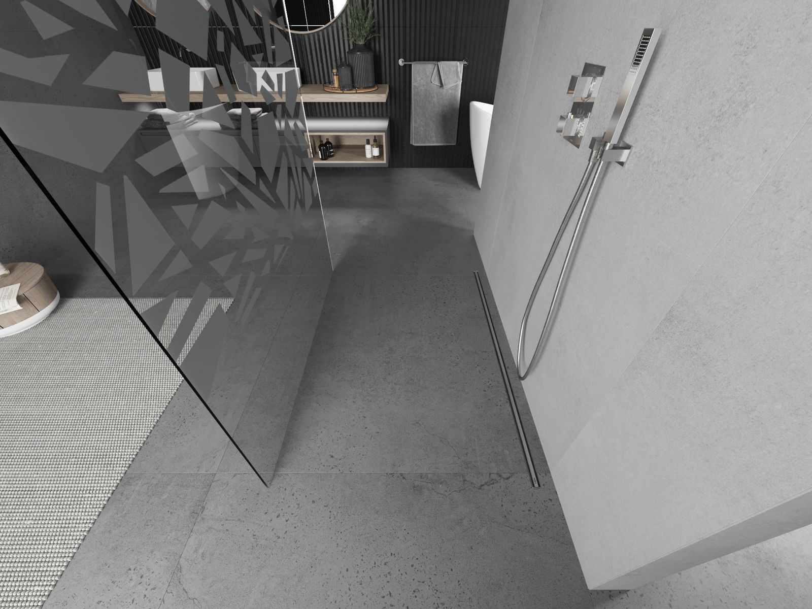 O produto, dependendo das necessidades, pode ser montado tanto no chuveiro como diretamente no chão. O método de montagem universal permite adaptar o produto a diferentes tipos de casas de banho e configurações de espaço.