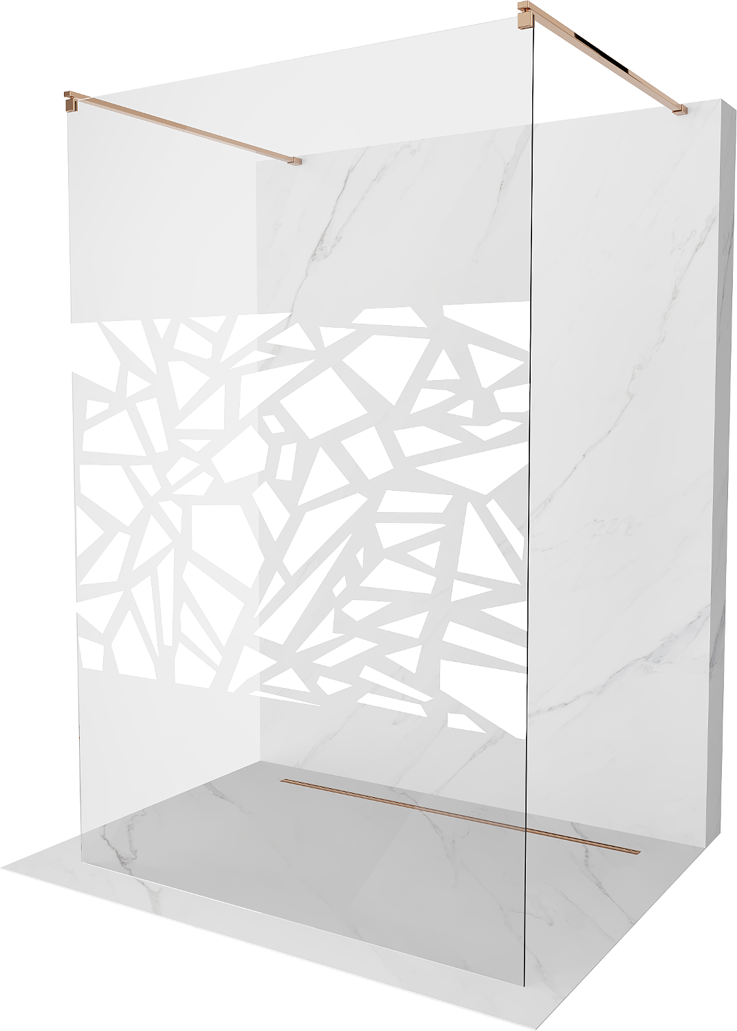 Mexen Kioto parede de duche autónoma 120 x 200 cm, padrão branco 8 mm, ouro rosa - 800-120-002-60-85