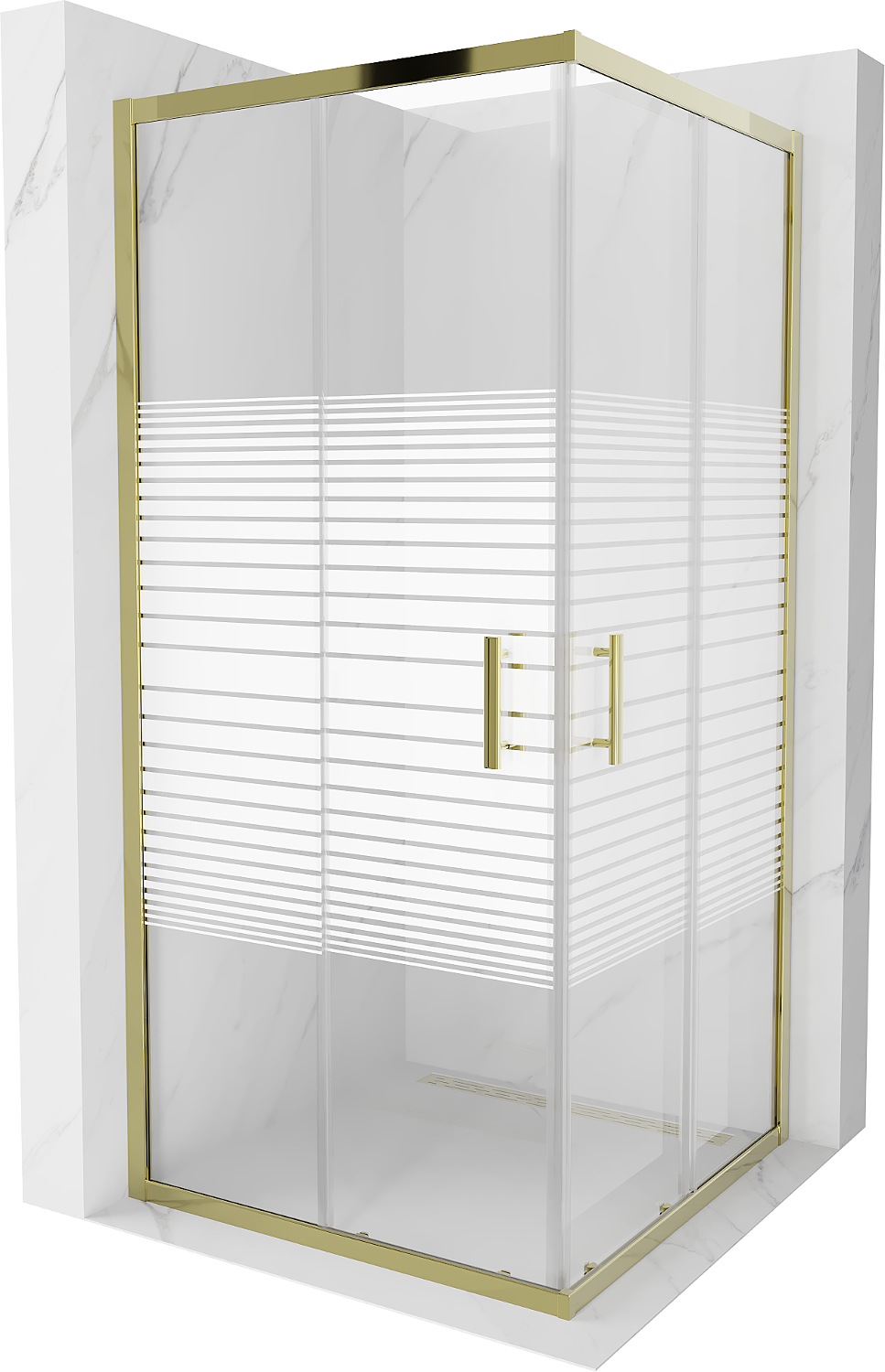 Mexen Rio cabine de duche quadrada 90 x 90 cm, faixas brancas, dourada - 860-090-090-50-20