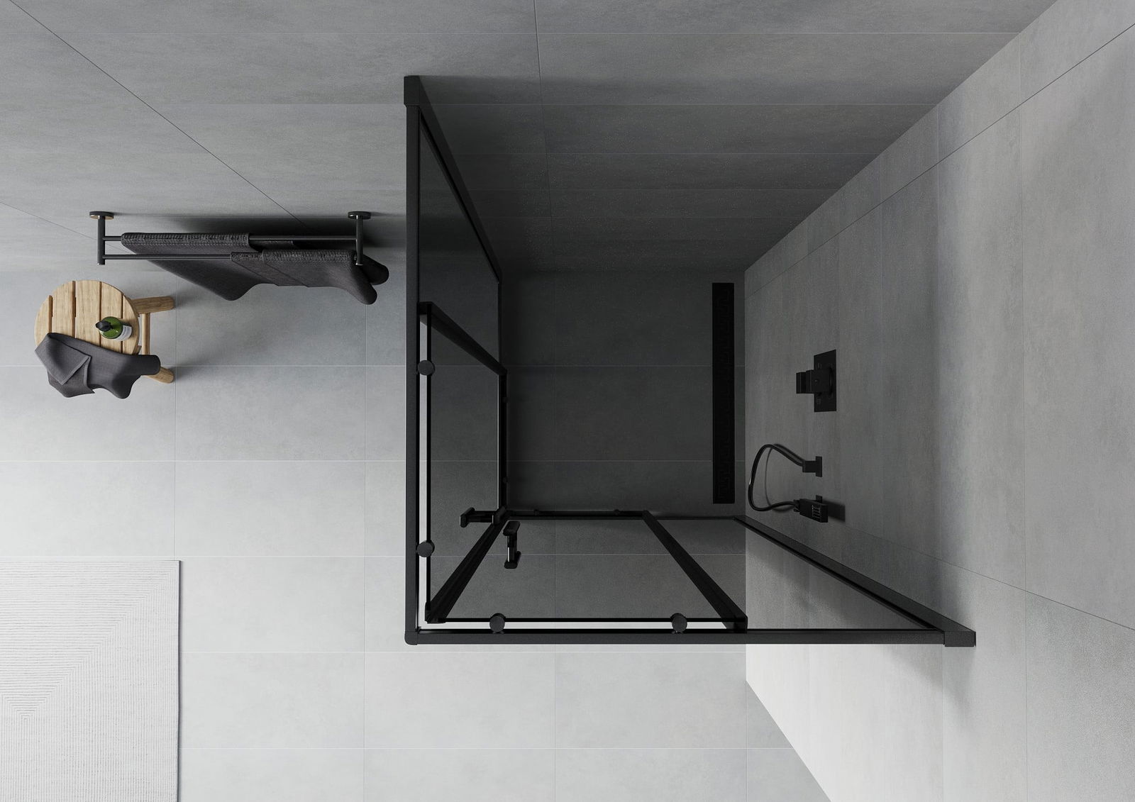 A pega prática e confortável foi feita de metal durável e resistente. A forma moderna combinada com o acabamento ajustado à cor dos perfis confere a todo o conjunto uma aparência moderna e estilosa, realçando a estética de qualquer casa de banho.