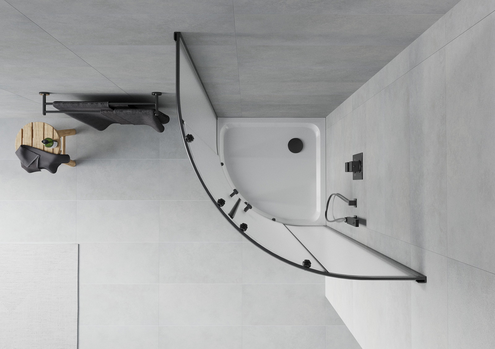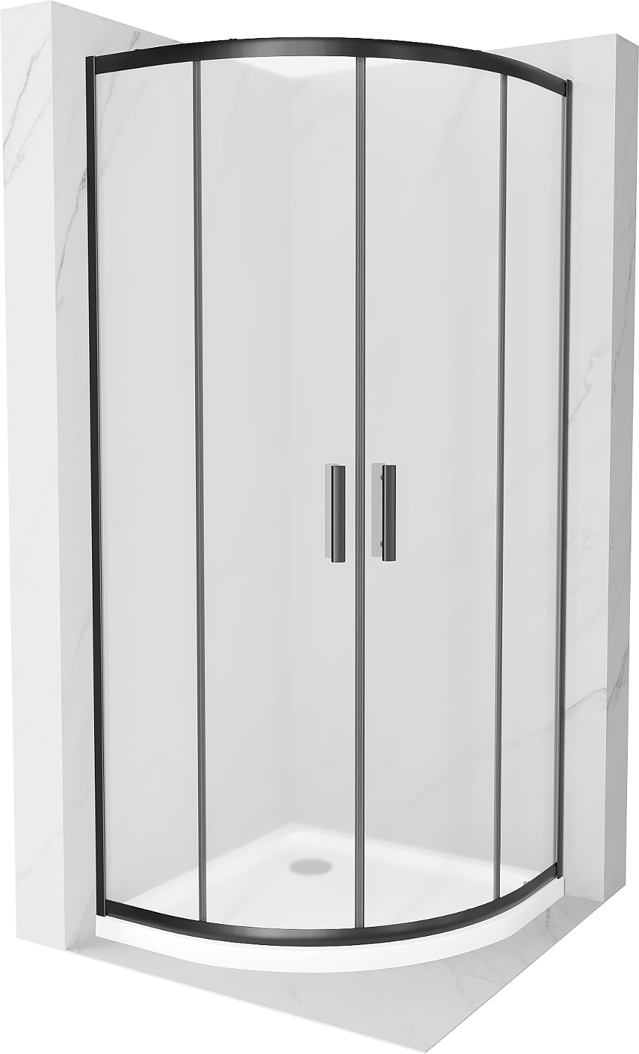Mexen Rio cabine de duche semicircular 80 x 80 cm, fosco, preto + base de duche Flat, branco - 863-080-080-70-30-4110B