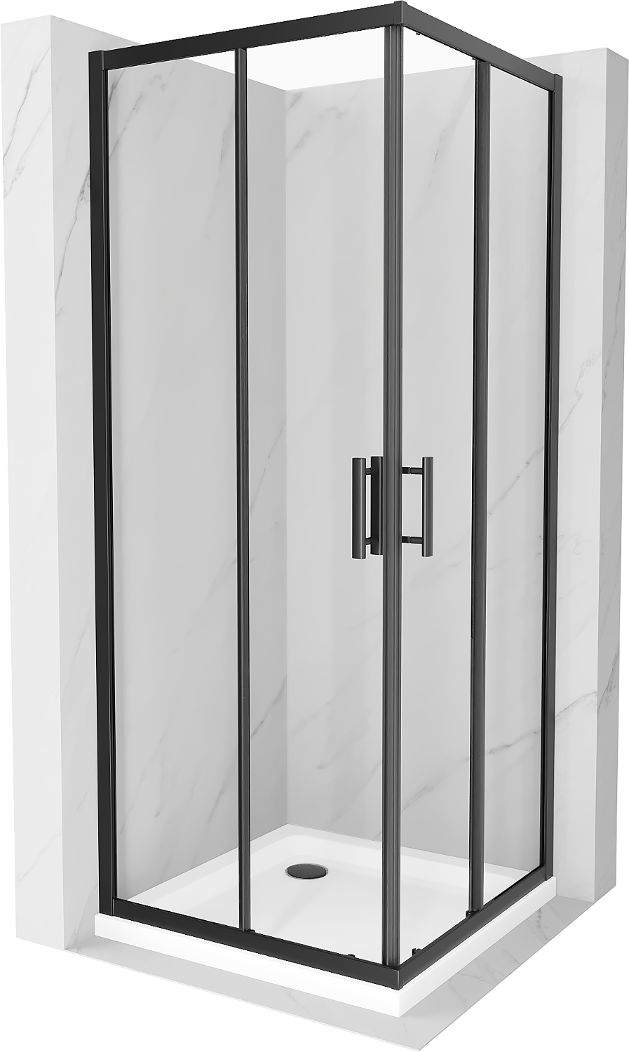 Mexen Rio cabine de duche quadrada 80 x 80 cm, transparente, preta + base de duche Flat, branca - 860-080-080-70-00-4010B