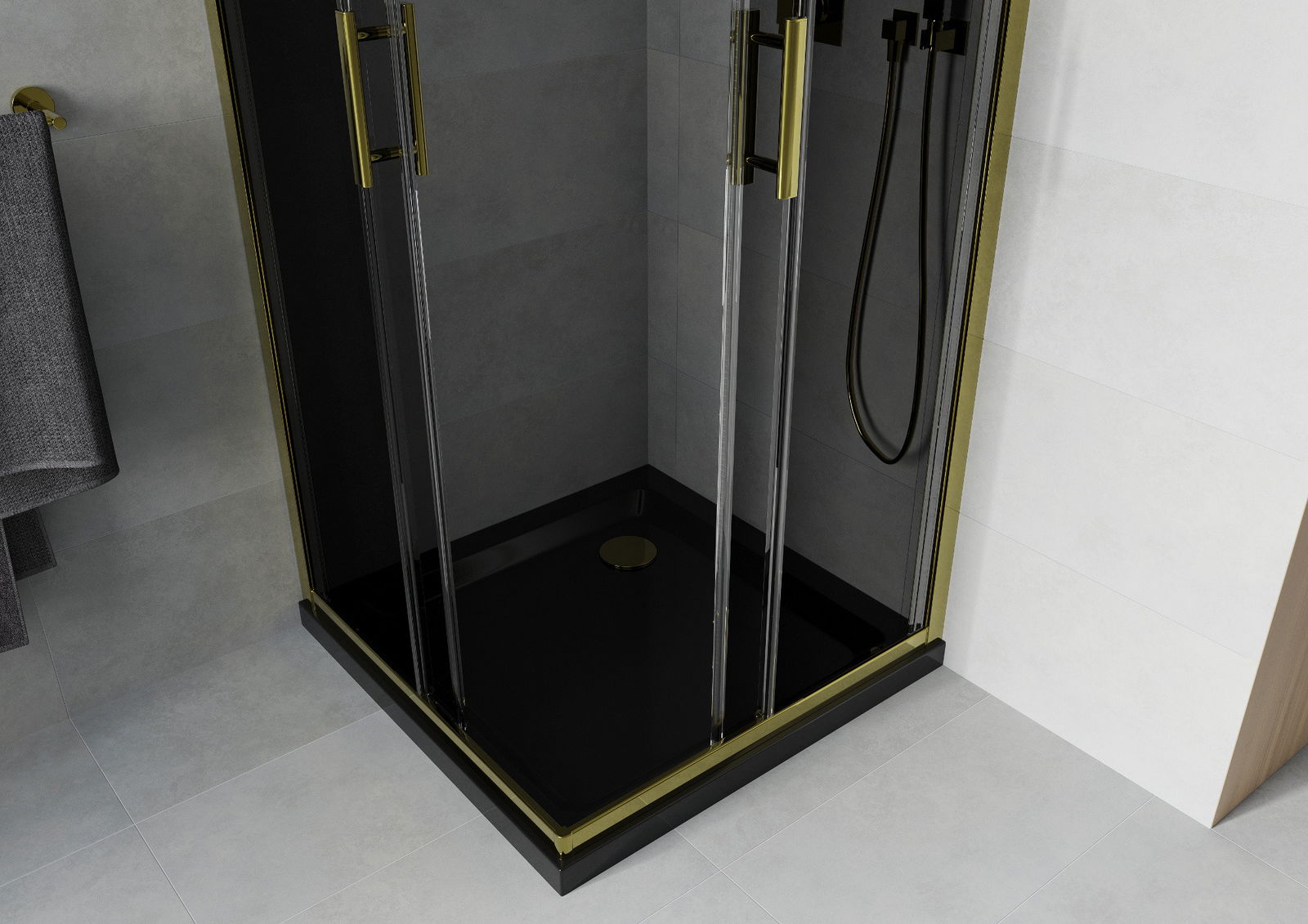Mexen Rio cabine de duche quadrada 70 x 70 cm, grafite, dourada + base Flat, preta - 860-070-070-50-40-4070G