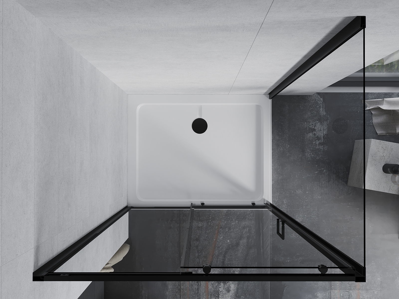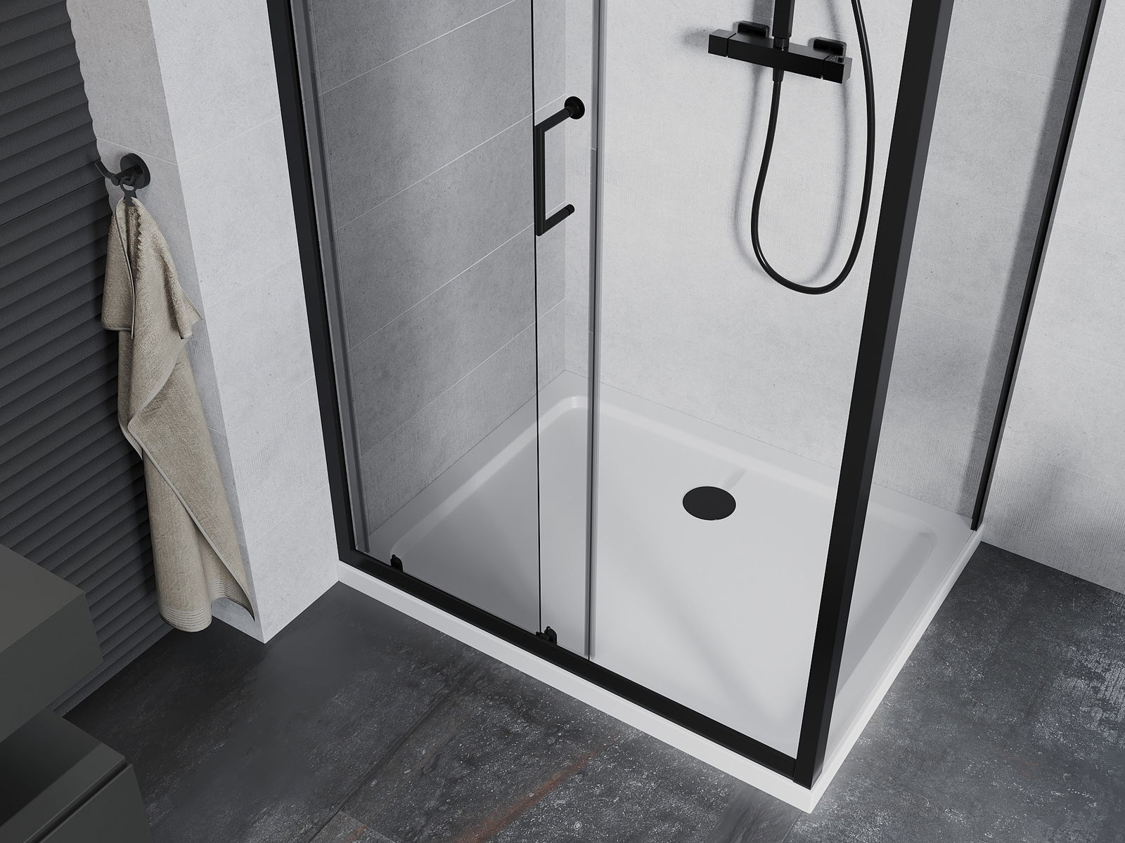 A pega prática e confortável foi feita de metal durável e resistente. A forma moderna combinada com o acabamento ajustado à cor dos perfis confere a todo o conjunto uma aparência moderna e estilosa, realçando a estética de qualquer casa de banho.