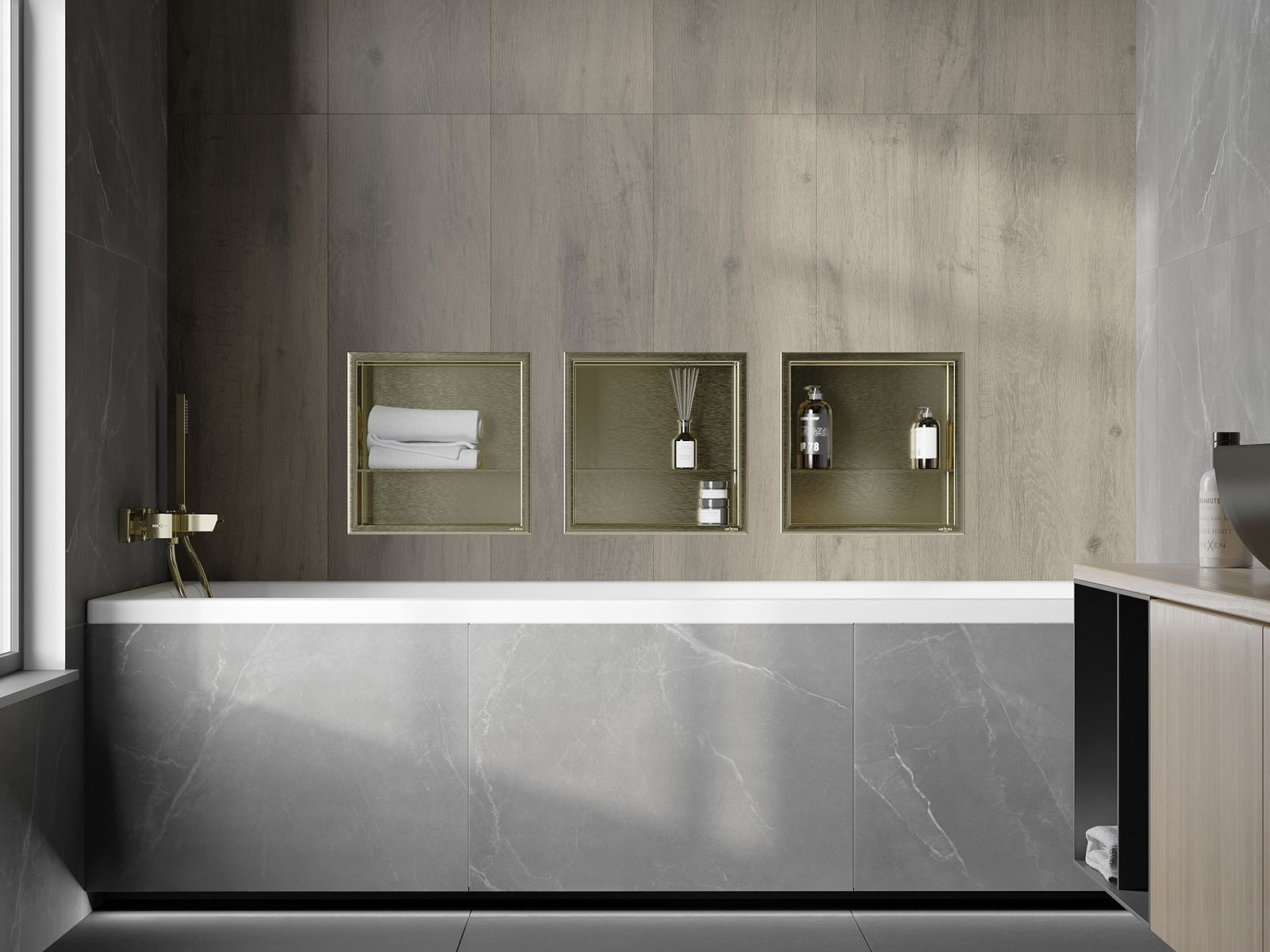 Mexen X-Wall-R prateleira embutida com flange e prateleira 30 x 30 cm, dourado escovado - 1950303010S