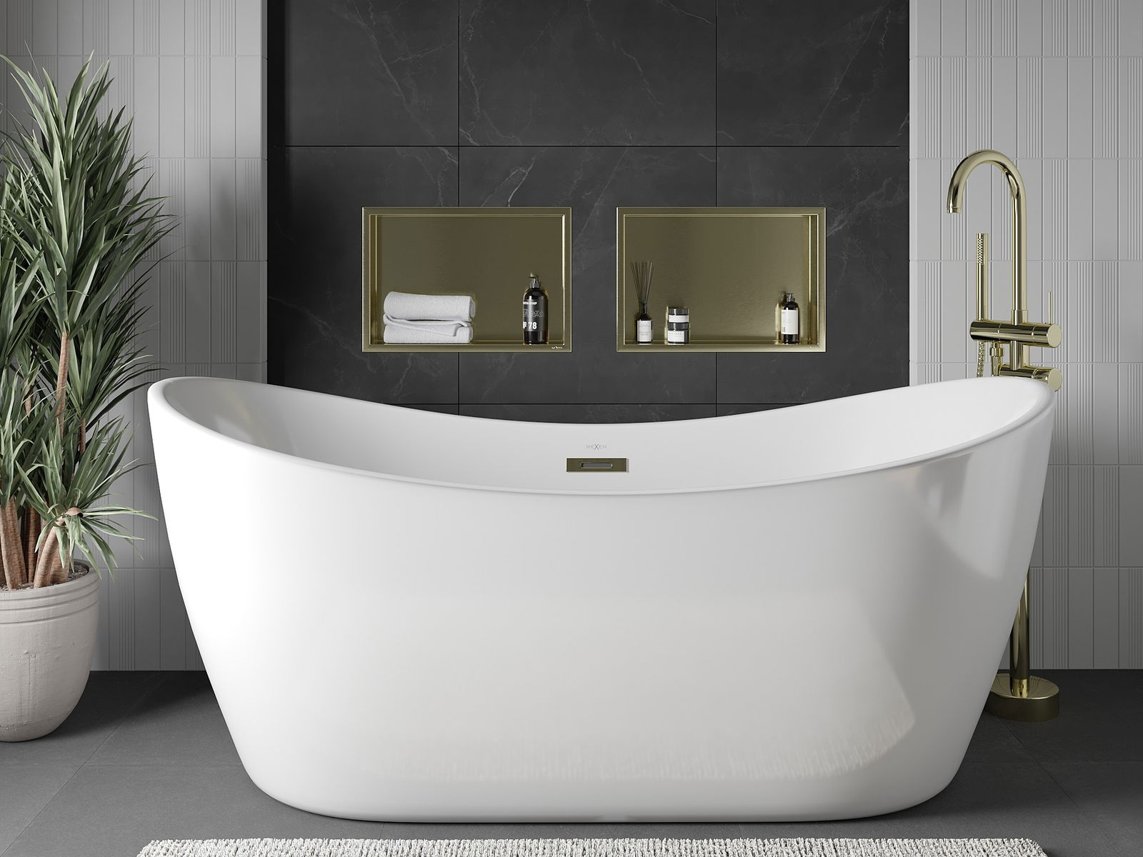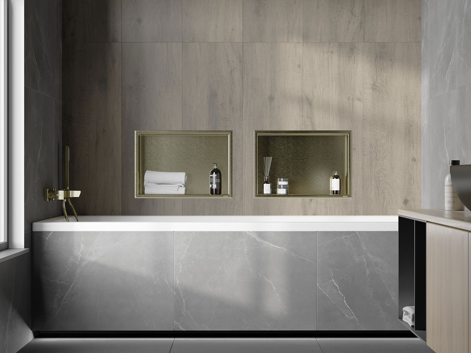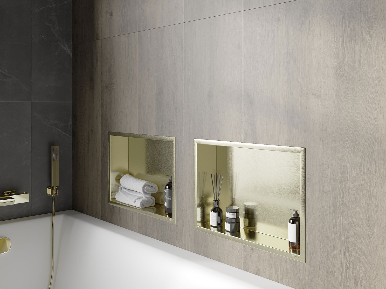 Mexen X-Wall-R prateleira embutida com flange 45 x 30 cm, dourado escovado - 1950453010