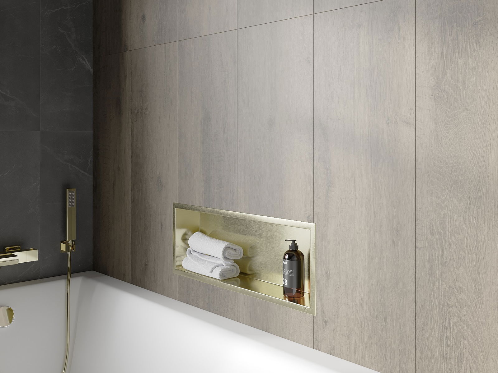 Mexen X-Wall-R prateleira embutida com flange 60 x 20 cm, dourada escovada - 1950602010