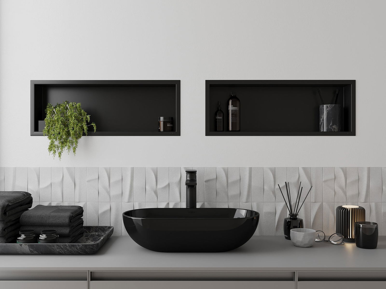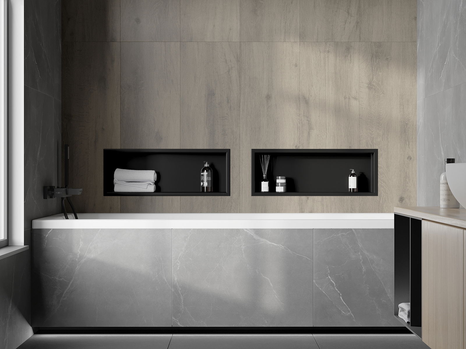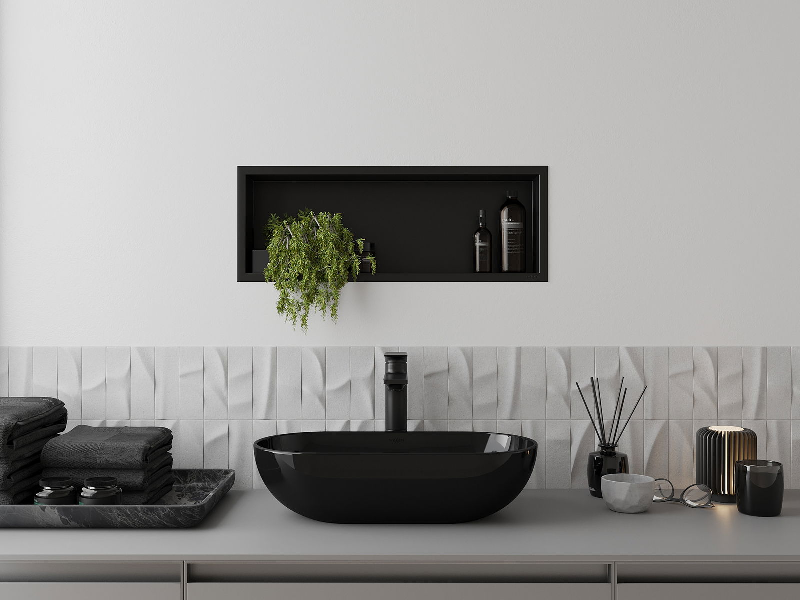 Mexen X-Wall-R prateleira embutida com flange 60 x 20 cm, preta - 1970602010