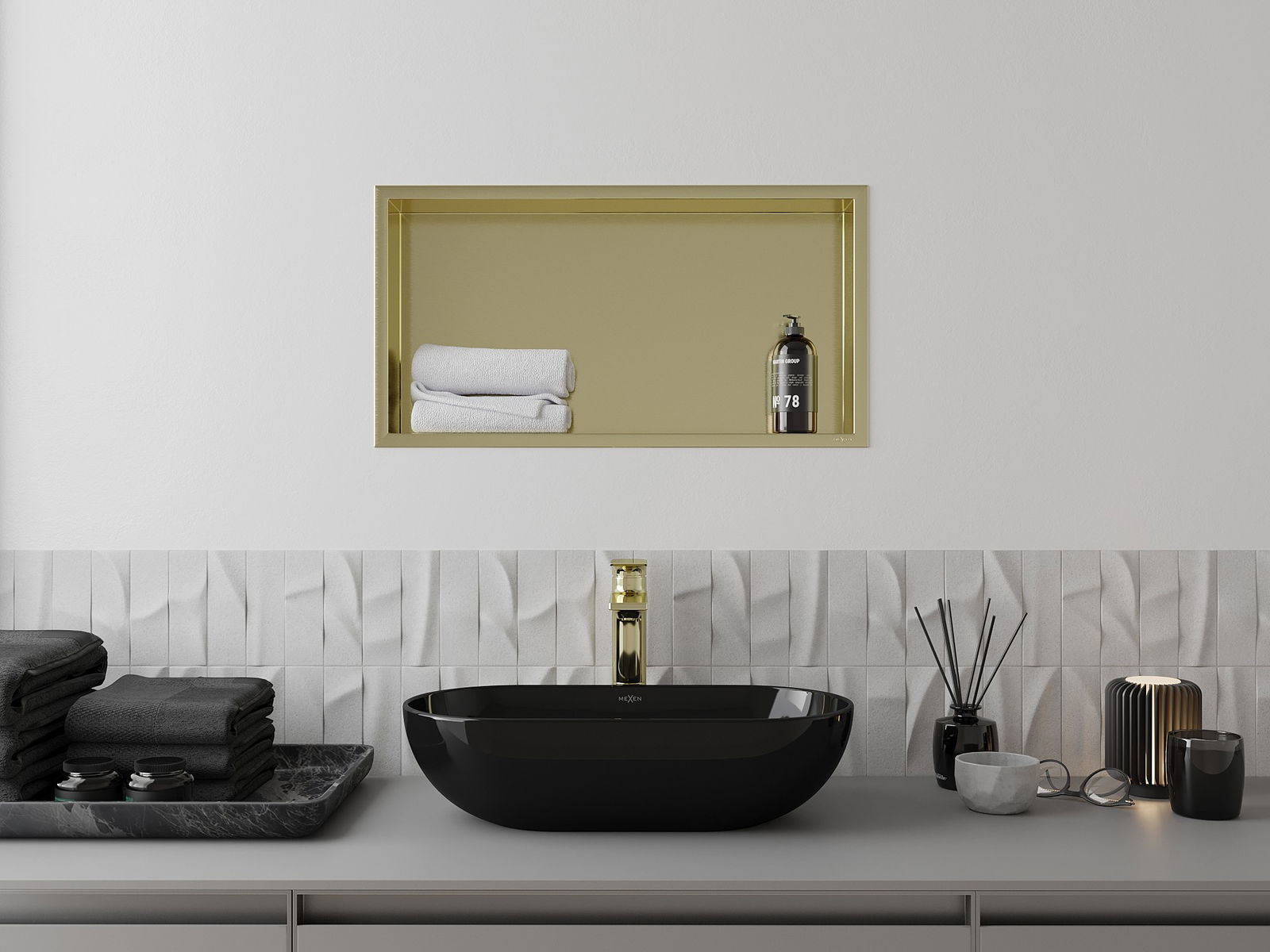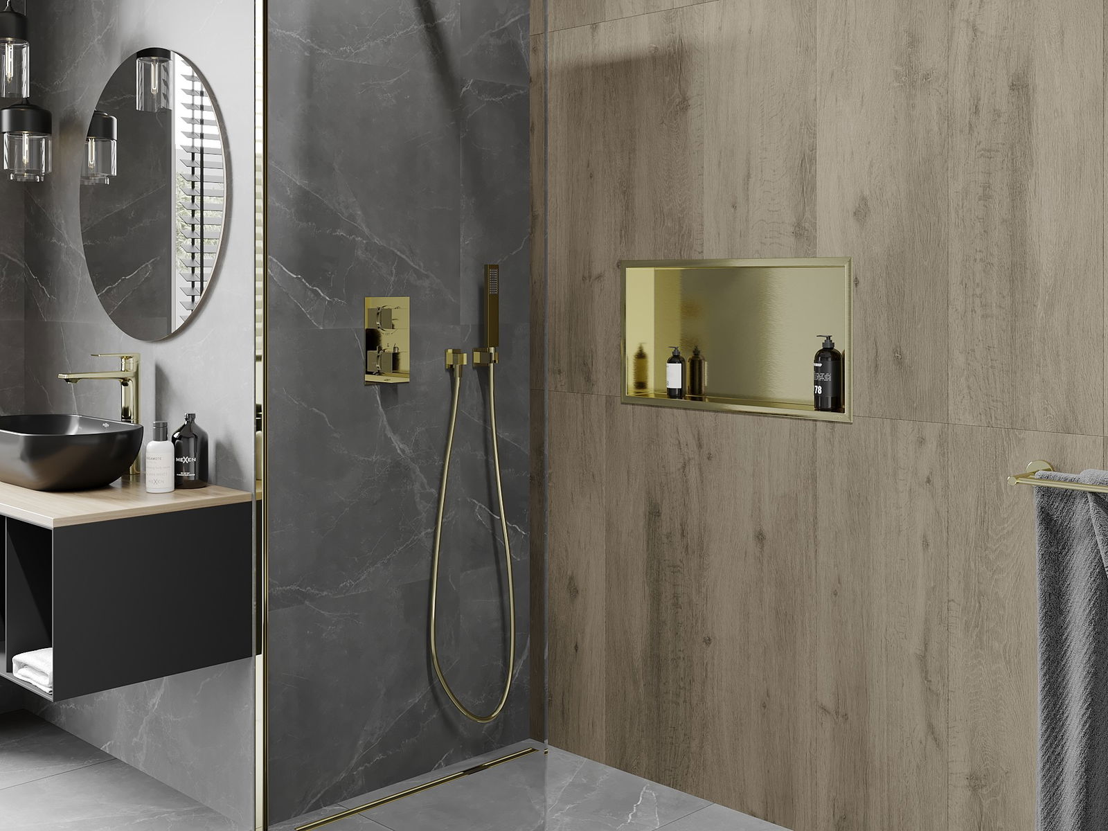 Mexen X-Wall-R prateleira embutida com flange 60 x 30 cm, dourada escovada - 1950603010
