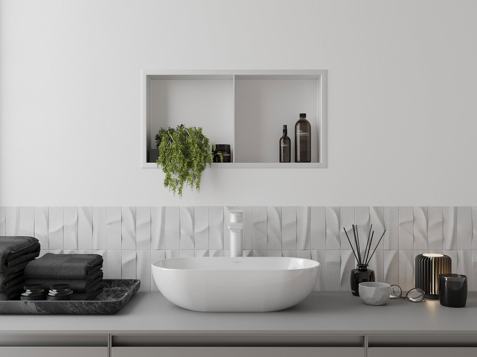 Possibilidade de instalação na parede ou numa estrutura especialmente preparada. É uma solução extremamente moderna e funcional, permitindo economizar espaço e ajustar o produto à estética do interior e criar uma composição harmoniosa.
