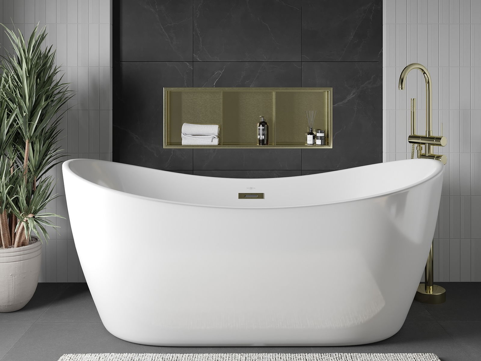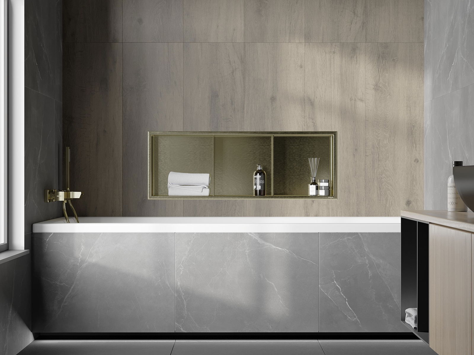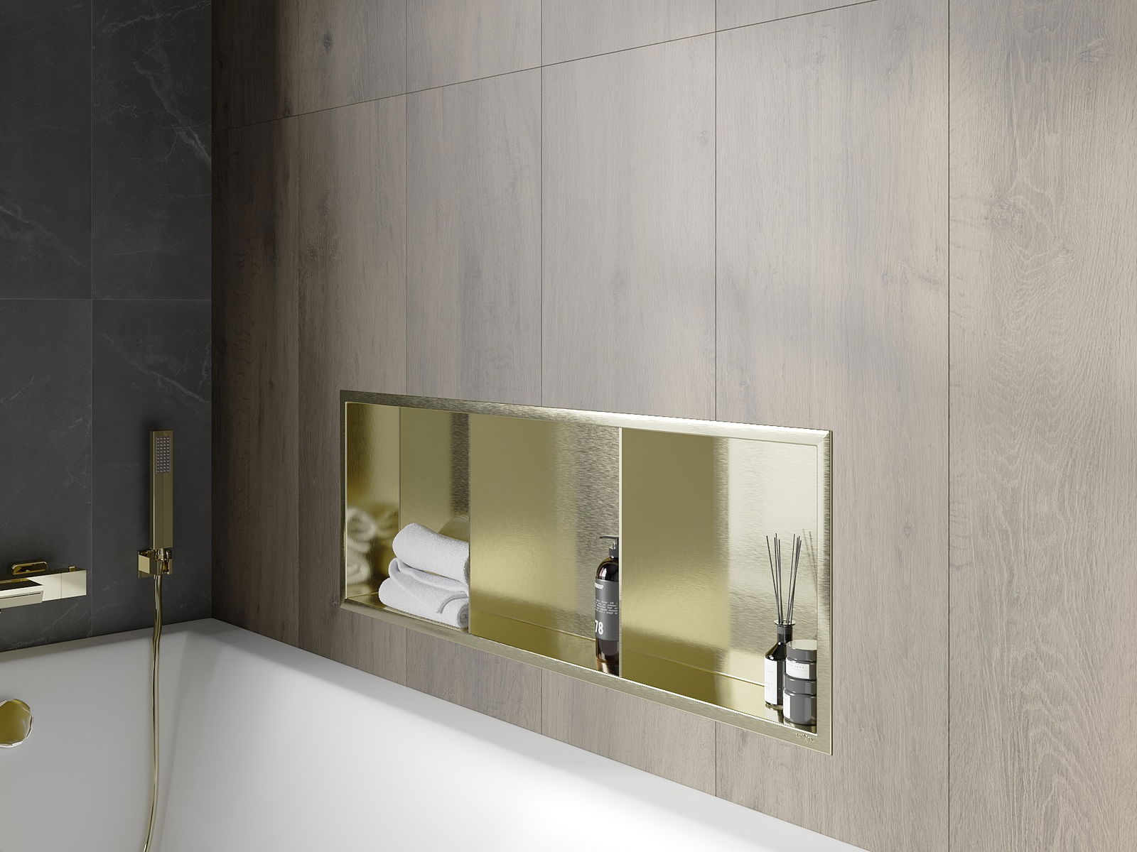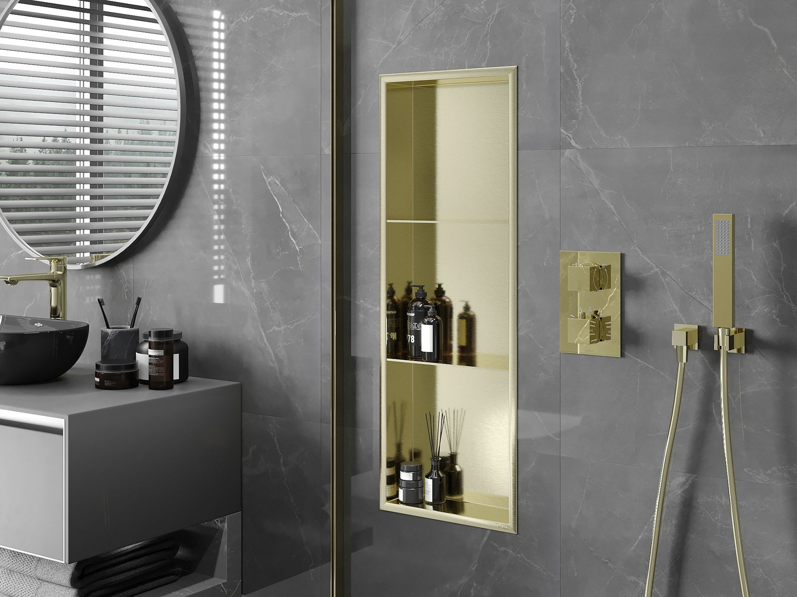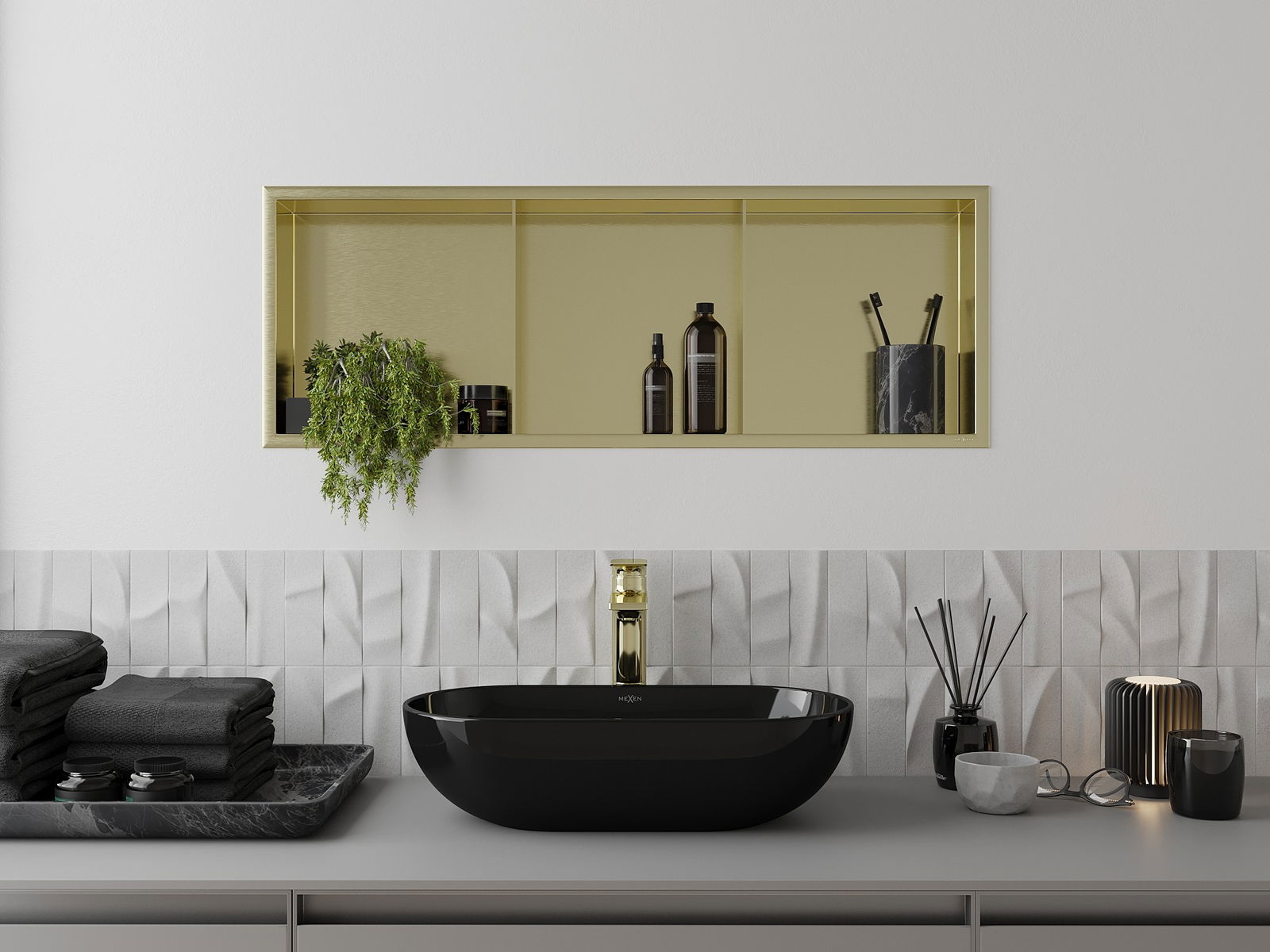 Mexen X-Wall-R prateleira embutida com flange e prateleira 90 x 30 cm, dourada escovada - 1950903010S