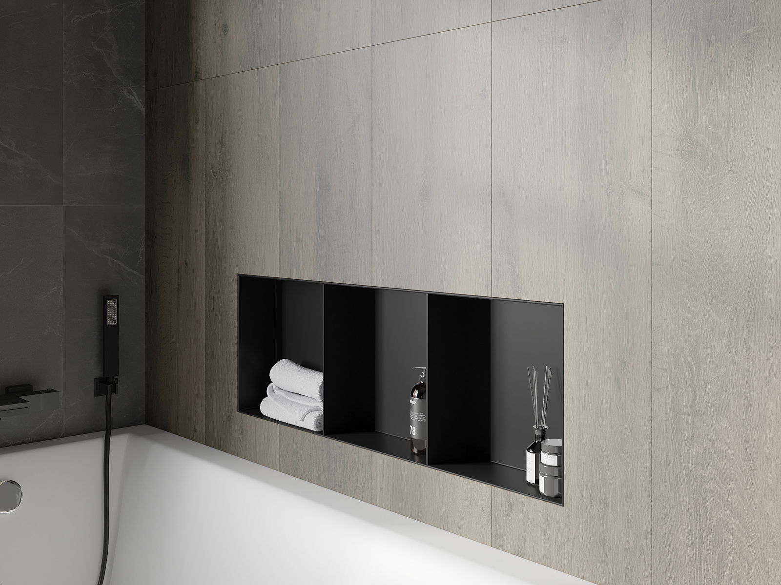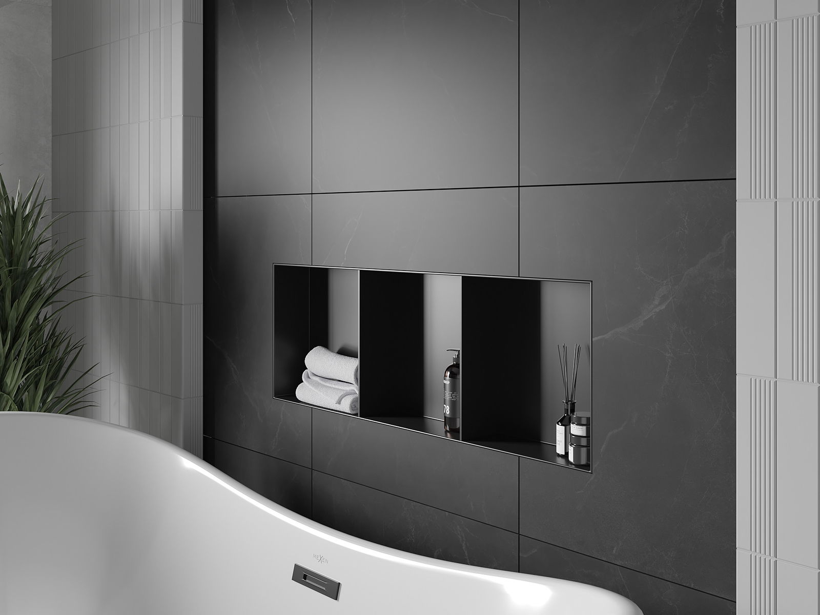 Mexen X-Wall-NR prateleira embutida sem flange com prateleira 90 x 30 cm, preta - 1971903010S