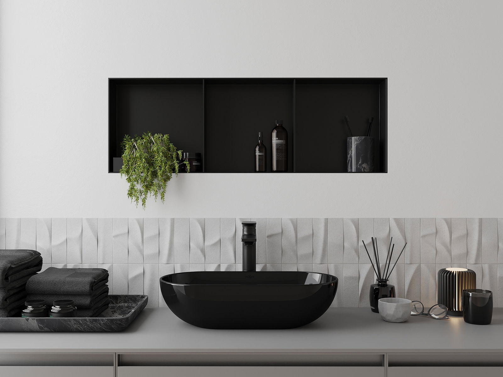 Possibilidade de instalação na parede ou numa estrutura especialmente preparada. É uma solução extremamente moderna e funcional, permitindo economizar espaço e ajustar o produto à estética do interior e criar uma composição harmoniosa.