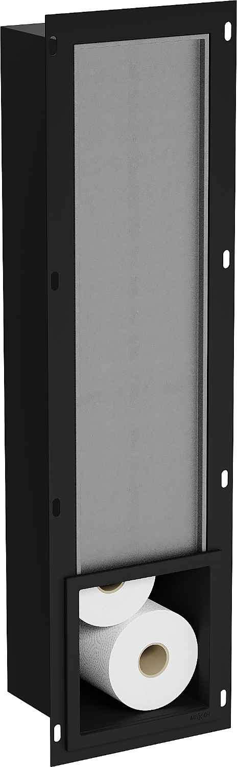 X-wall é um suporte prático para papel higiénico com um dispensador embutido na parede. O novo rolo está sempre ao alcance da mão, e o espaço anteriormente destinado ao armazenamento de papel higiénico pode ser utilizado de outra forma.