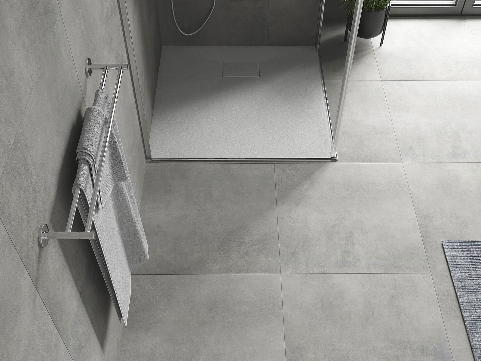 A superfície do tabuleiro do chuveiro assemelha-se a uma pedra na sua estrutura. Constitui uma combinação excecional de aparência natural com um design de interiores moderno. Adiciona caráter, realça a estética e a elegância da decoração da casa de banho e encanta com a sua forma.