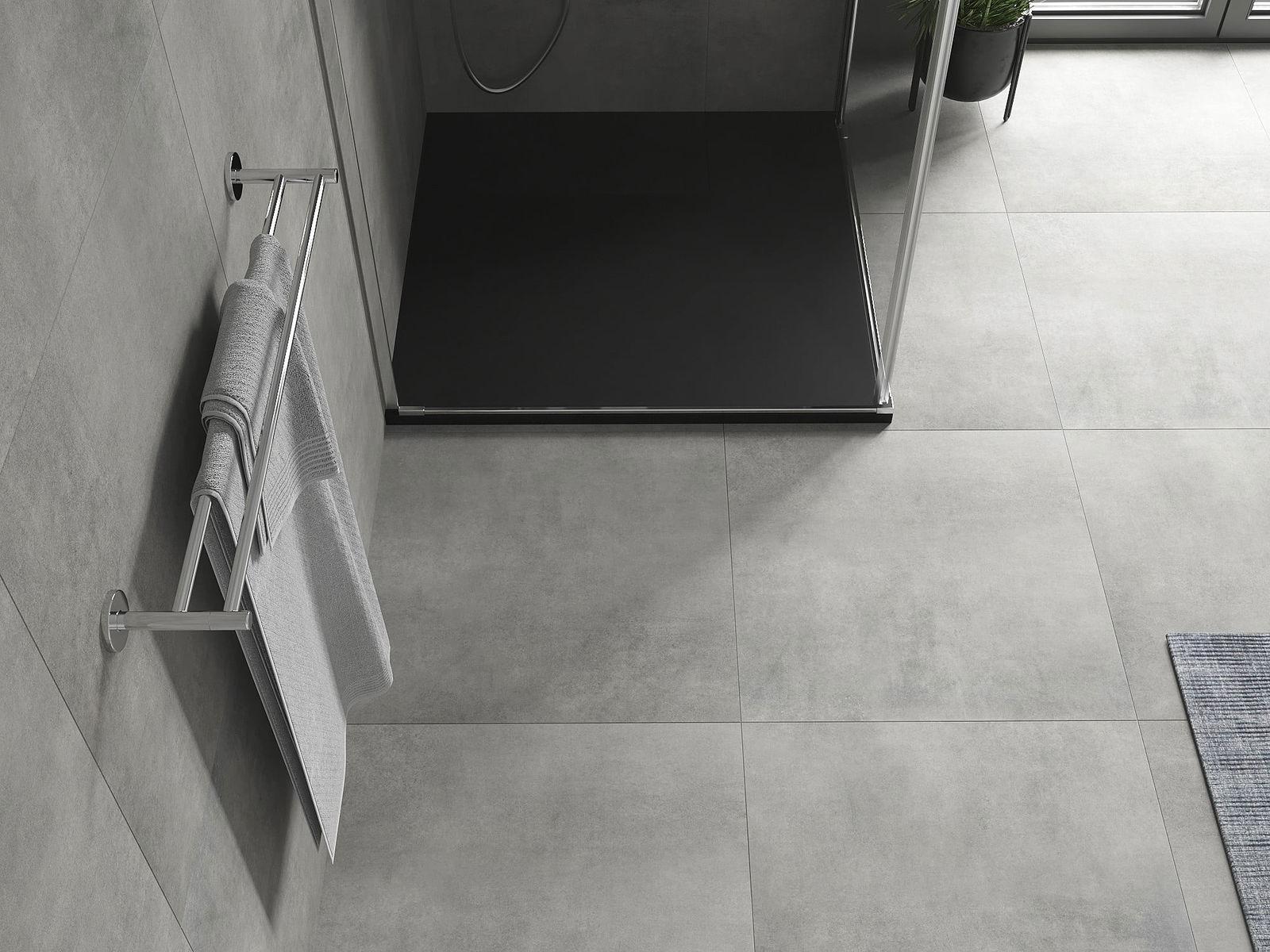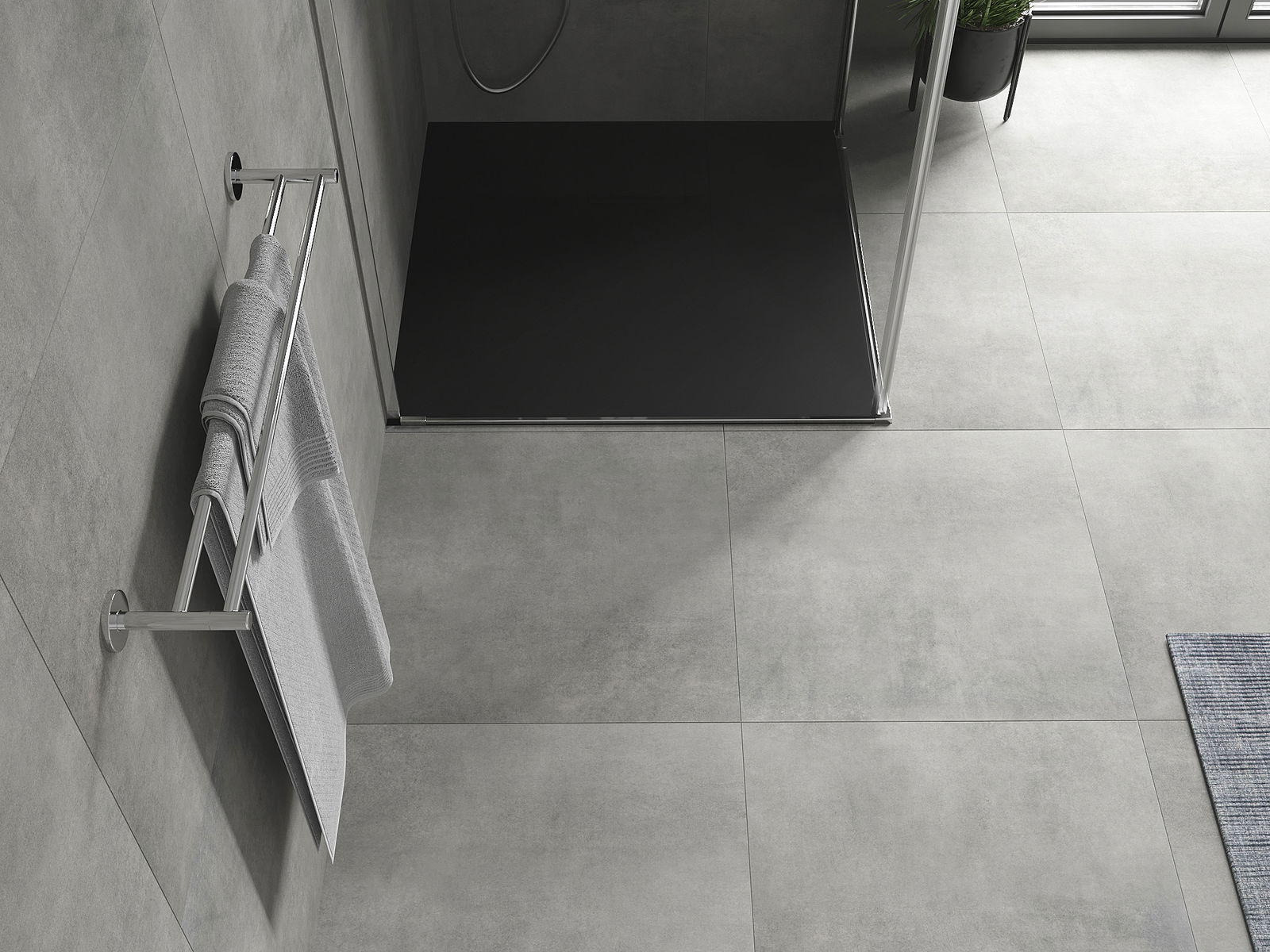 A superfície do tabuleiro do chuveiro assemelha-se a uma pedra na sua estrutura. Constitui uma combinação excecional de aparência natural com um design de interiores moderno. Adiciona caráter, realça a estética e a elegância da decoração da casa de banho e encanta com a sua forma.