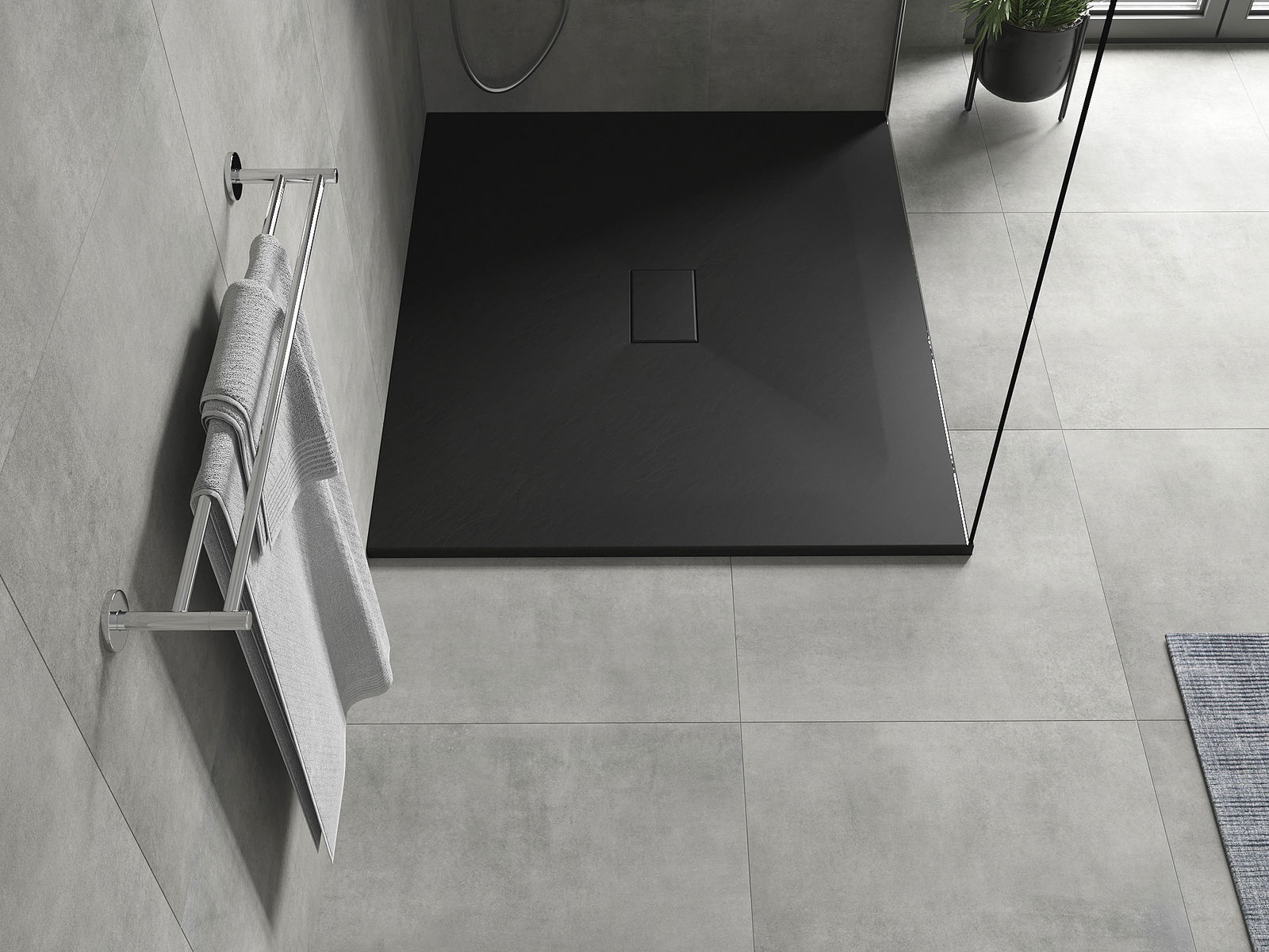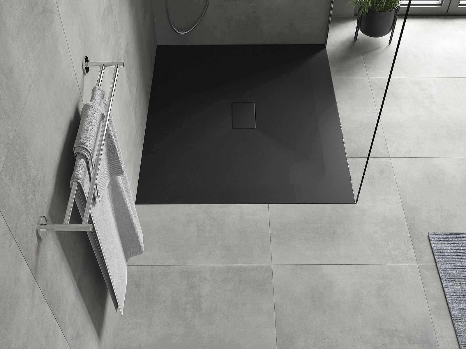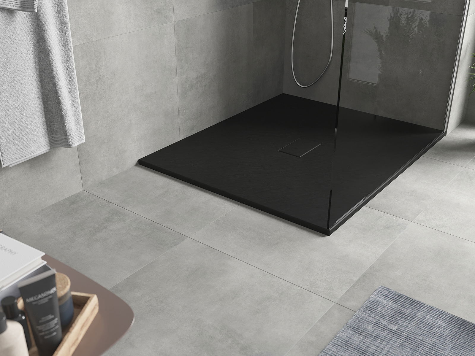 A superfície do tabuleiro do chuveiro assemelha-se a uma pedra na sua estrutura. Constitui uma combinação excecional de aparência natural com um design de interiores moderno. Adiciona caráter, realça a estética e a elegância da decoração da casa de banho e encanta com a sua forma.