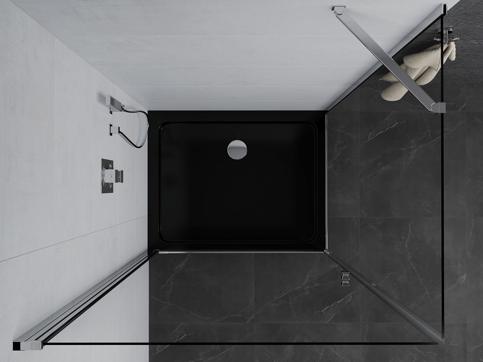 Mexen Pretoria cabine de duche com porta de abertura 70 x 100 cm, transparente, cromado + base de duche Flat, preto
